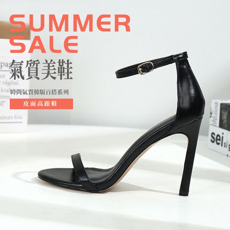 【小蘭優購】高跟鞋 大尺碼高跟鞋 夜店顯瘦高跟鞋一字帶高跟鞋 性感高跟鞋 黑色一字扣带凉鞋 性感細跟鞋 高端高跟
