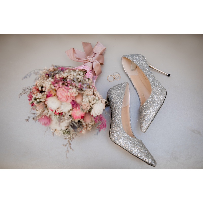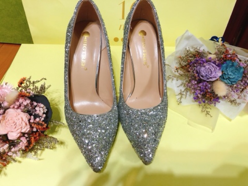 (二手)性感銀色尖頭高跟鞋/婚鞋 35號