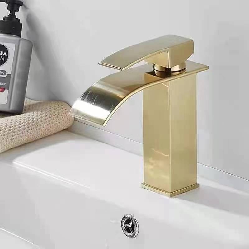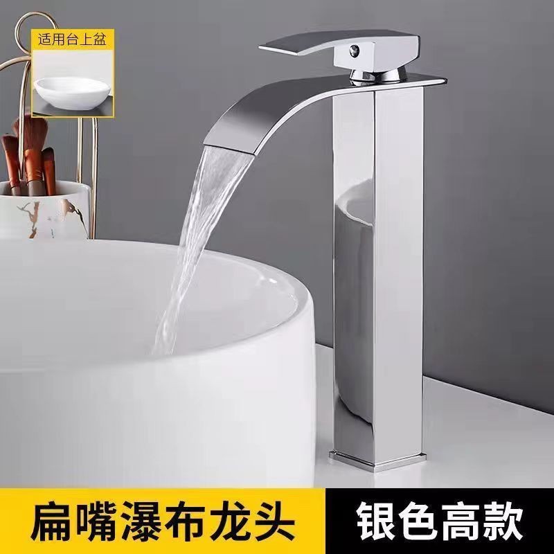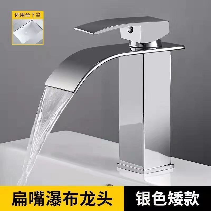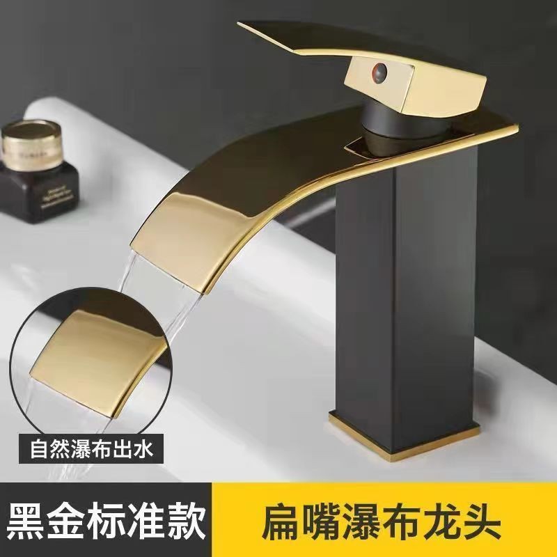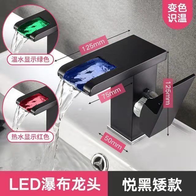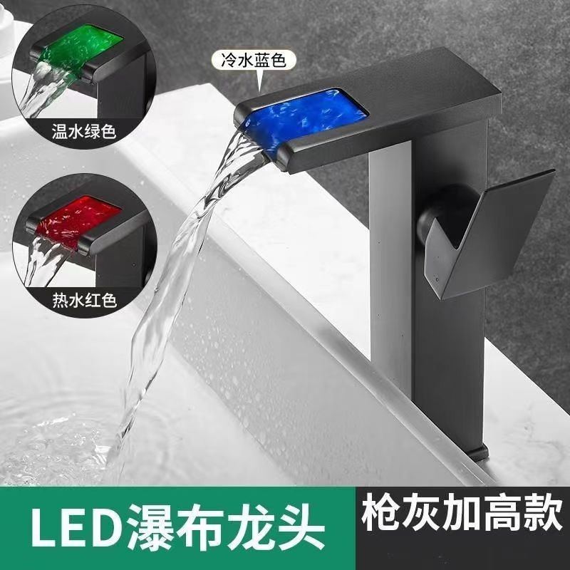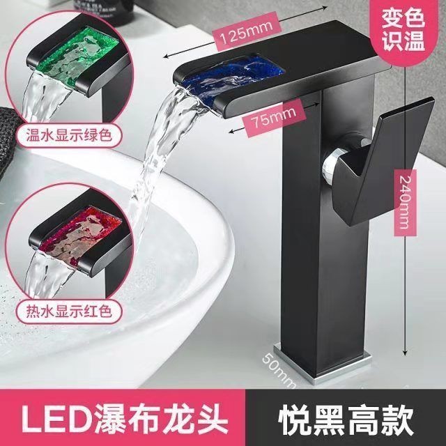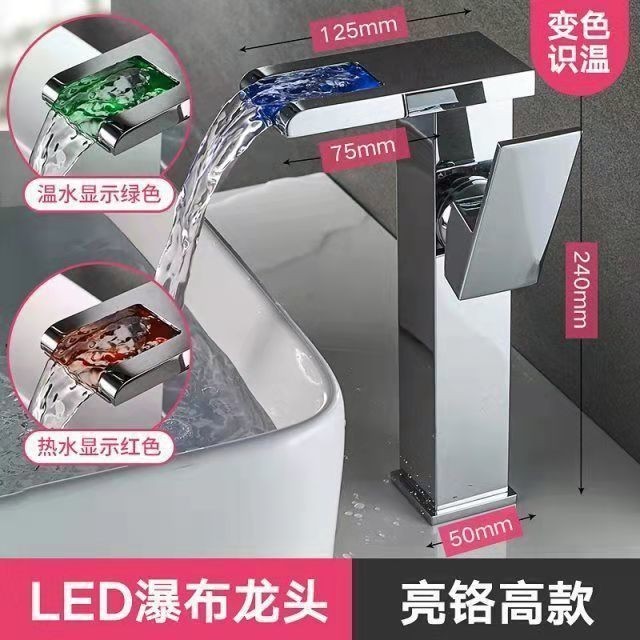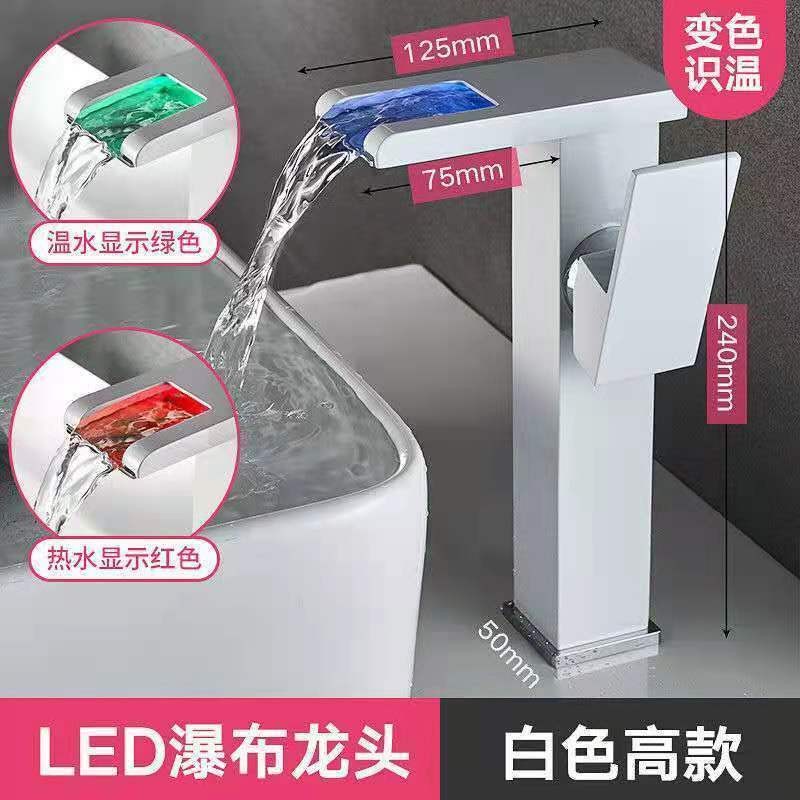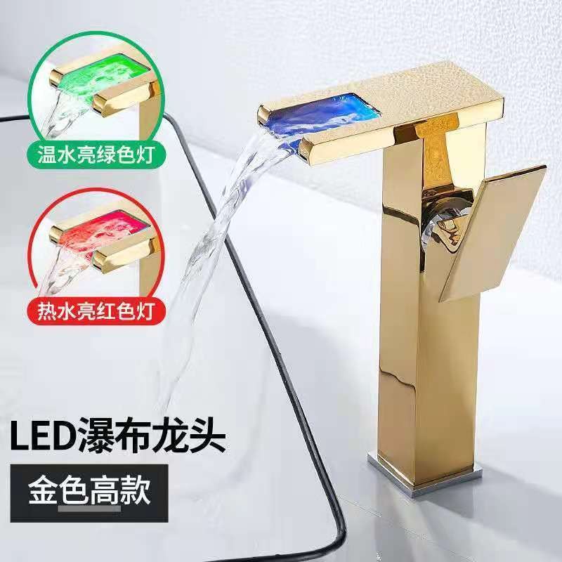 【嚴選好物】浴室水龍頭 洗臉盆髮光龍頭全銅冷熱閤一家用洗手臺溫控變色瀑布式水龍頭-蝦星人旂艦店