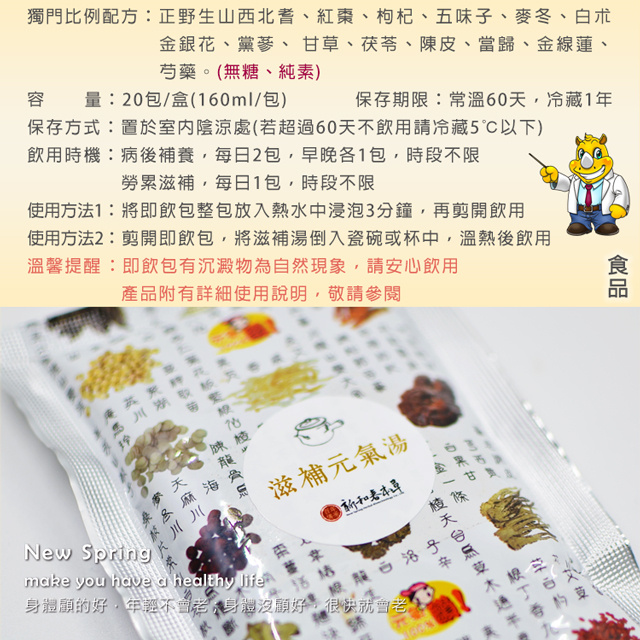 滋補元氣湯(即飲包)-勞累過度、病後術後之補養