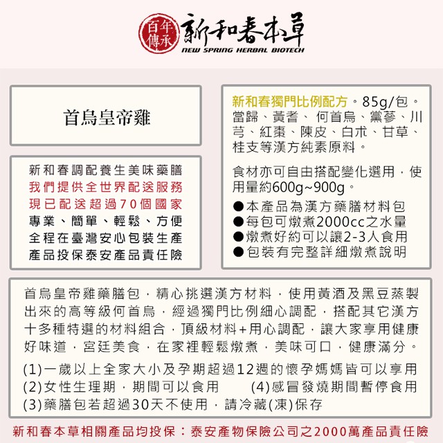 首烏皇帝雞【藥膳料理包】【新和春本草】【新和春中藥房】