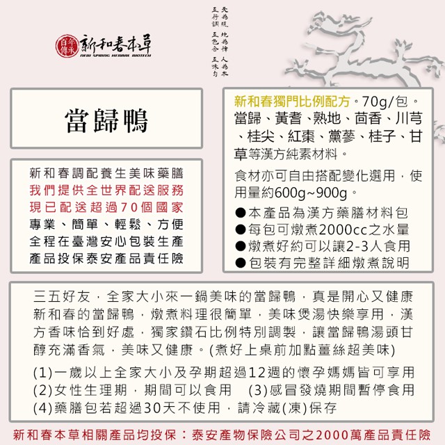 當歸鴨【藥膳料理包】【新和春本草】【新和春中藥房】