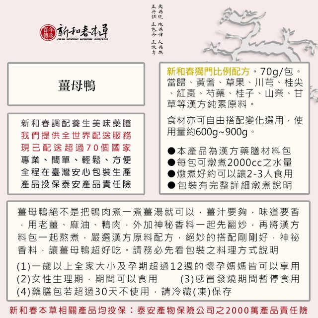 薑母鴨【藥膳料理包】【新和春本草】【新和春中藥房】