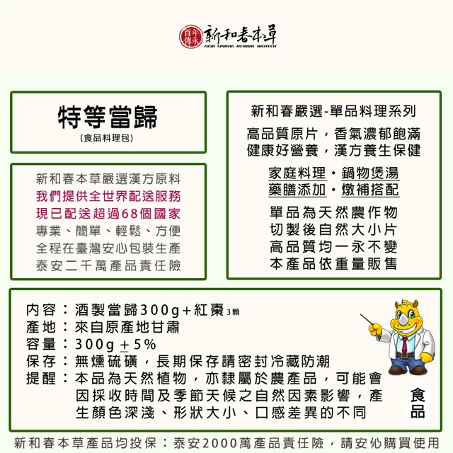特等當歸料理包【廚房單品】【新和春本草】【新和春中藥房】