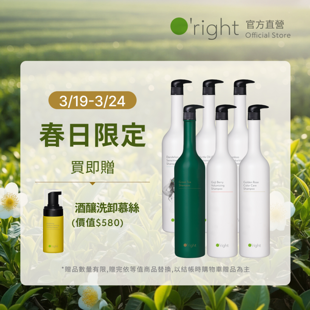O'right 歐萊德 全系列洗髮精1000mL 致贈 酒釀洗卸慕絲 多款任選/控油/淨化/豐盈/溫和/保濕/止癢