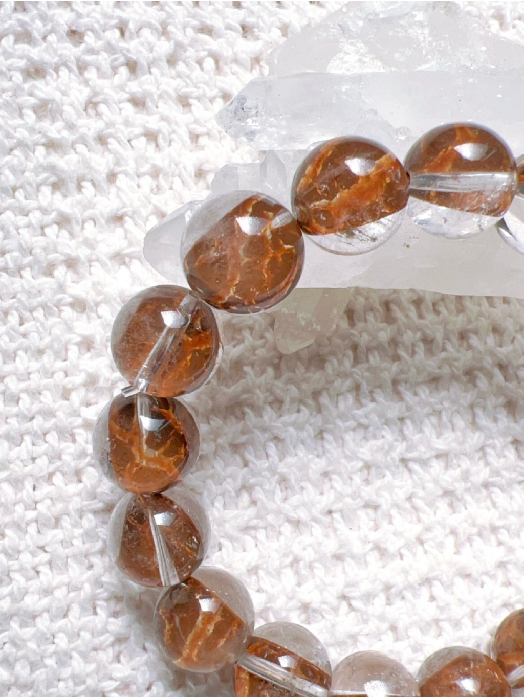 ✨天然 骸骨閃靈 紅泥 骸骨 閃靈鑽 11mm 11咪 手串 手珠|閃靈 半盆 一線天|超美 蛇紋 豹紋 半月 月牙