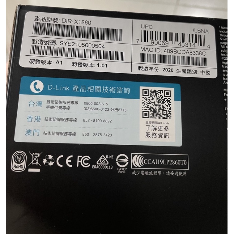 D-Link友訊 DIR-X1860 AX1800 Wi-Fi 6雙頻無線路由器