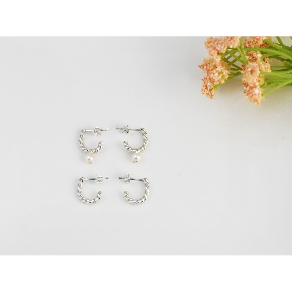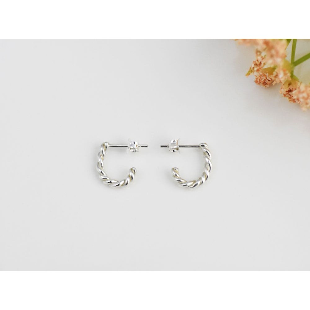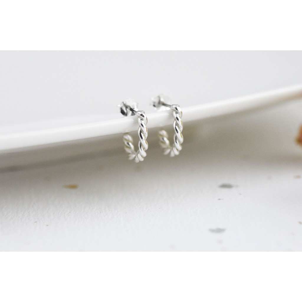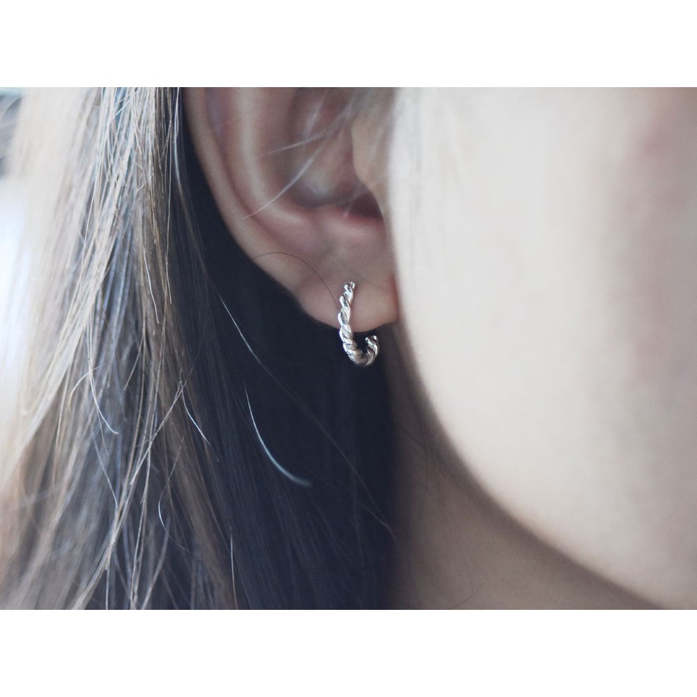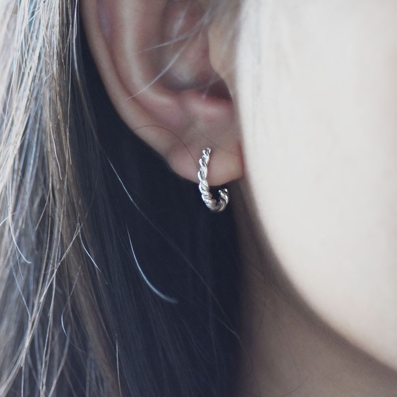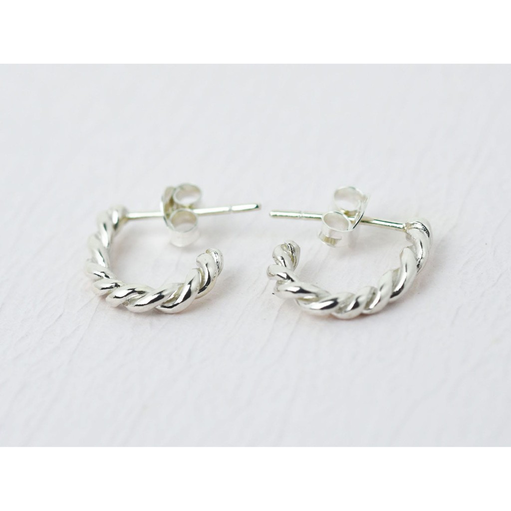 麻花捲 | 純銀耳環 圈式耳環 女款 簡約 手工銀飾