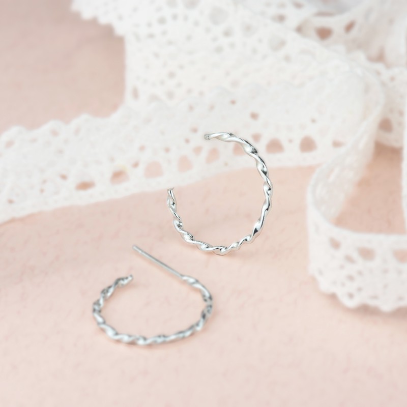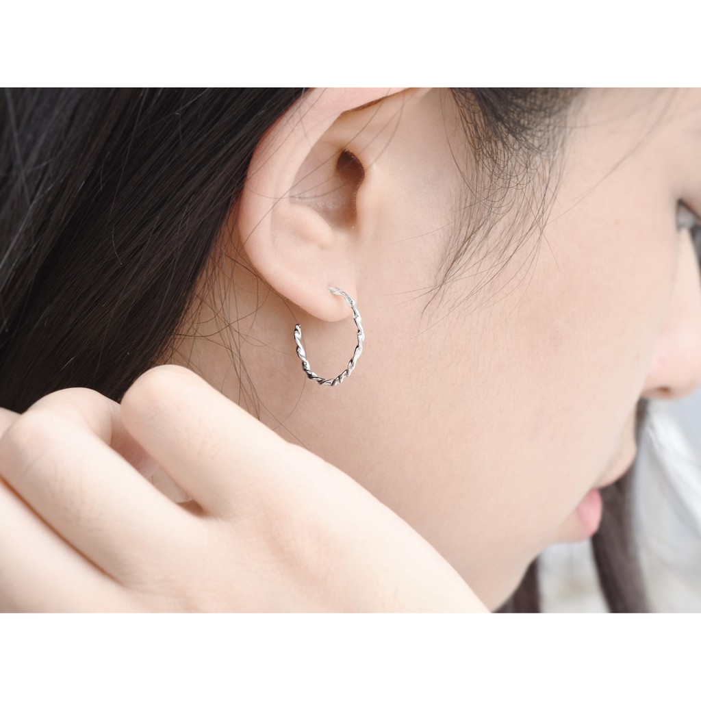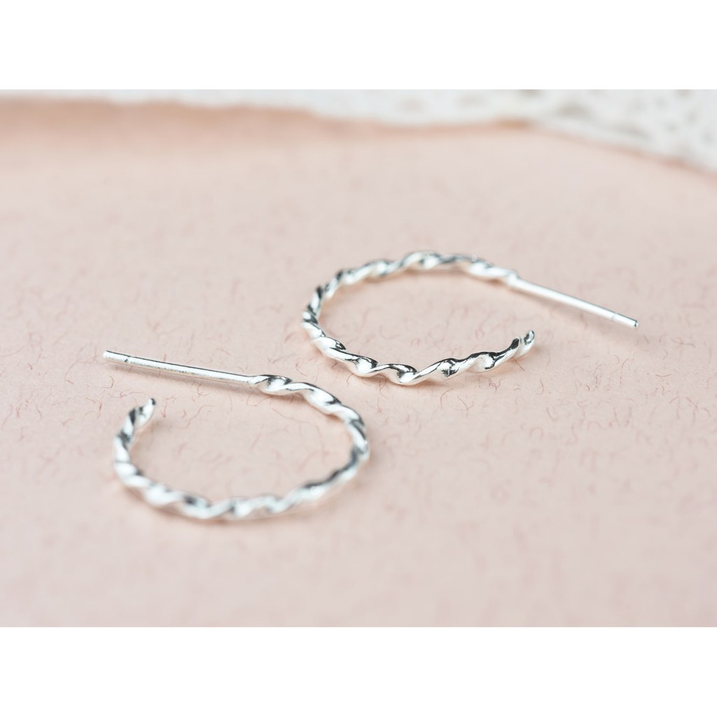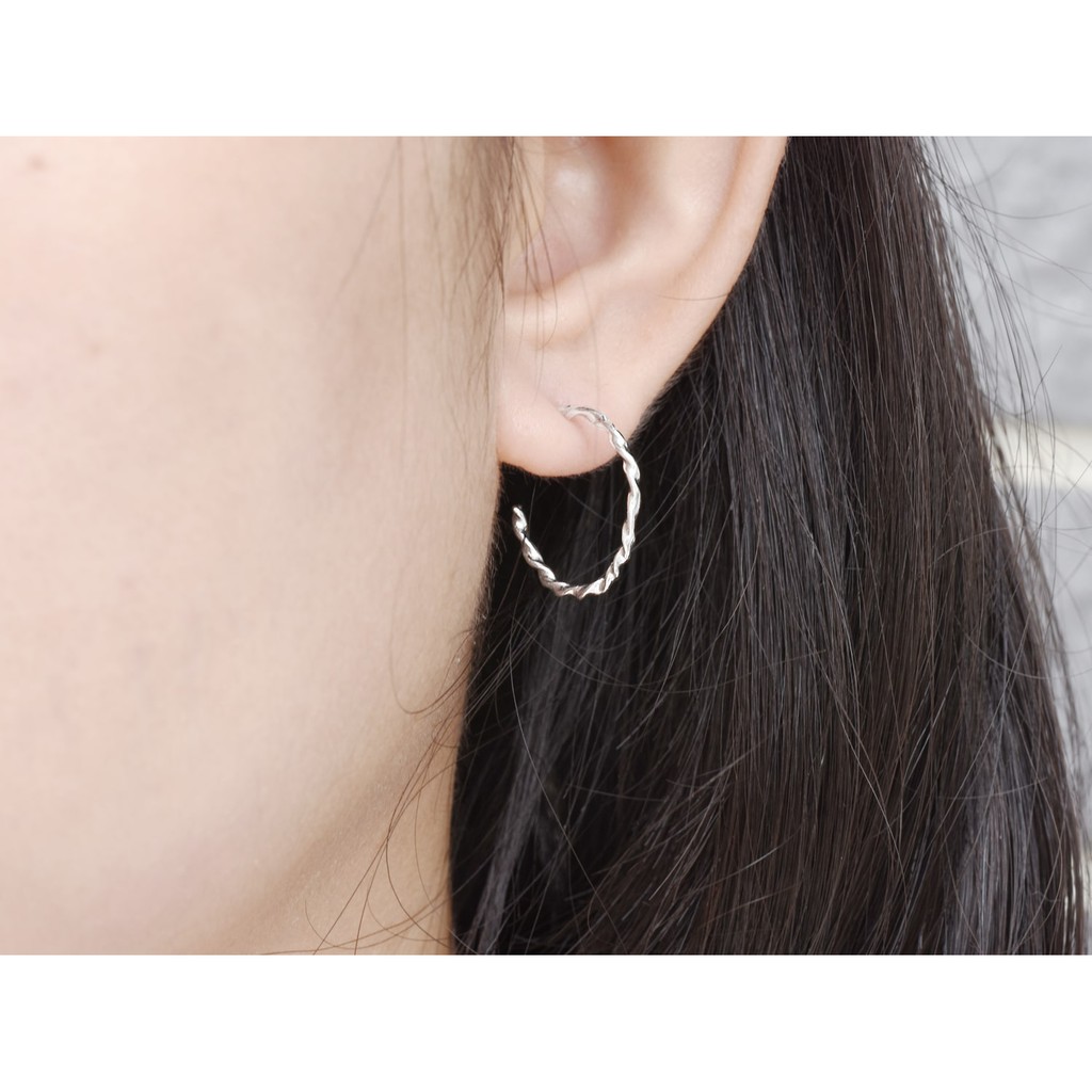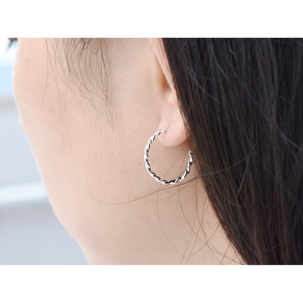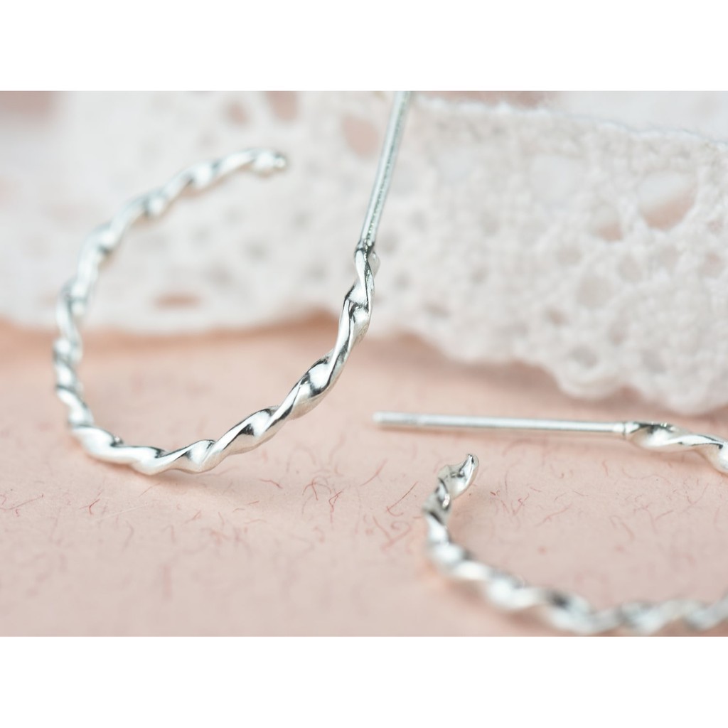 扭轉圈式耳環 | 925純銀 簡約 女款 手工銀飾