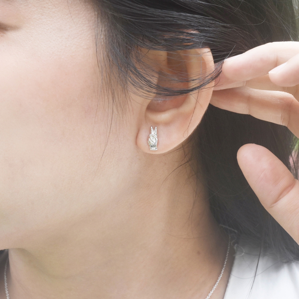 Love & peace針式耳環 | 925純銀 可改夾式 手勢耳環 情人禮物