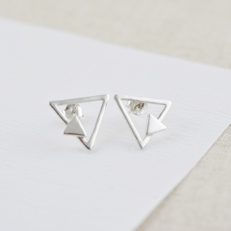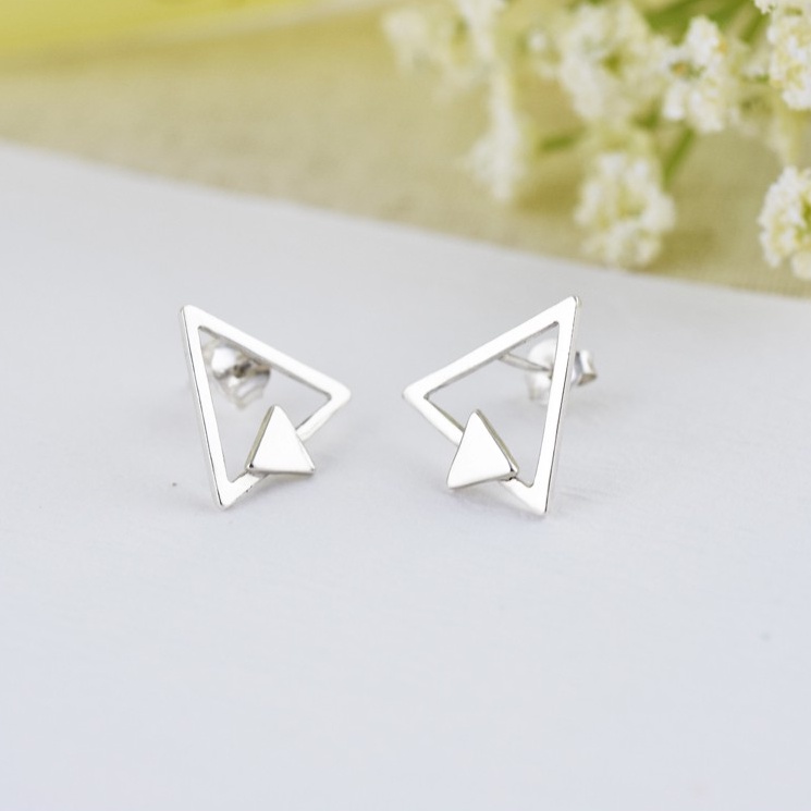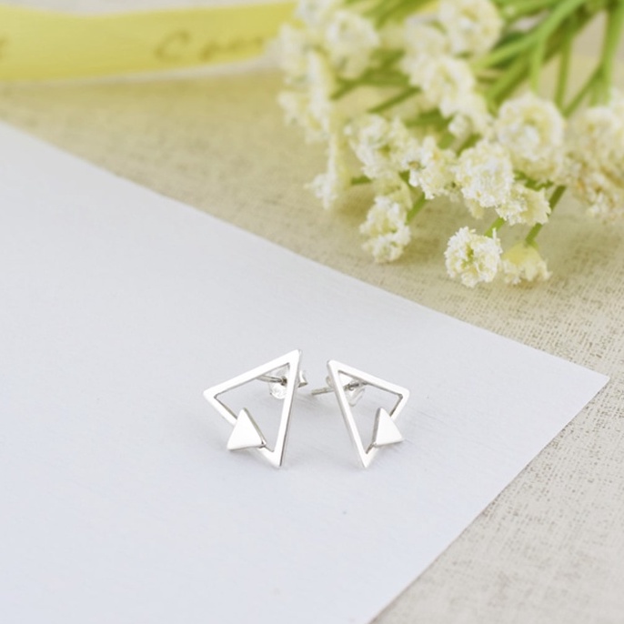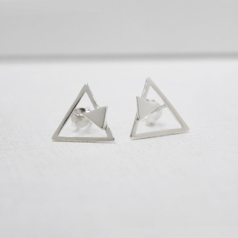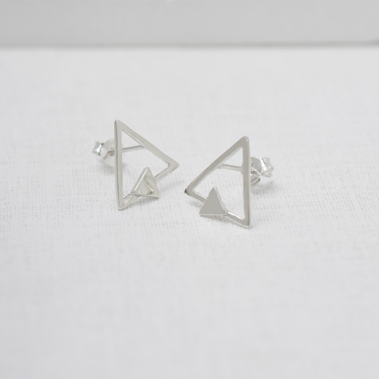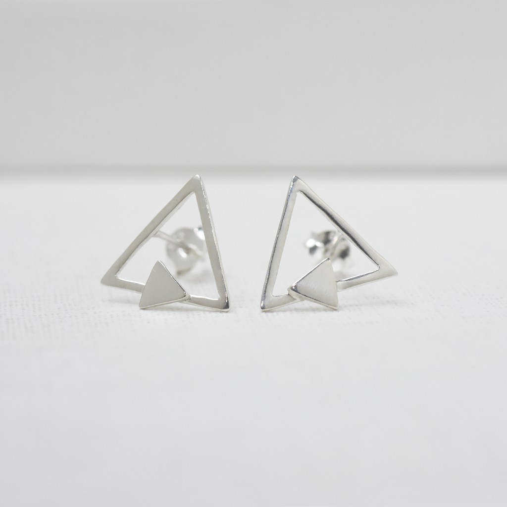 裸系 - 三角形耳環 | 925純銀 女款 可改夾式 簡約 手工銀飾