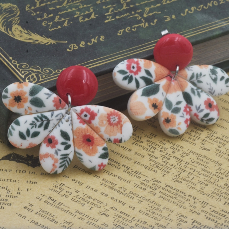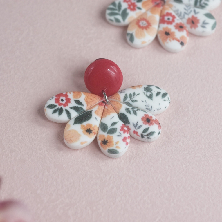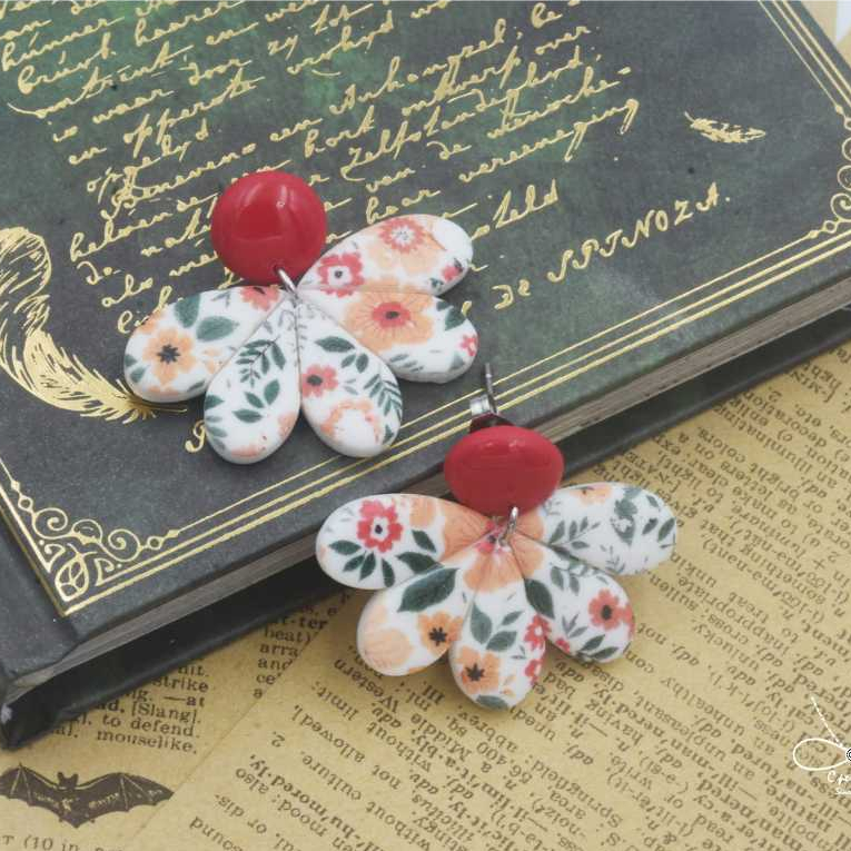 春天花團錦簇 | 母親節禮物 手工軟陶耳環 耳針式 春天耳環