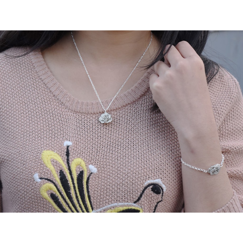 一朵玫瑰花 | 純銀項鍊 女款 rose 花朵 情人節禮物 手工銀飾