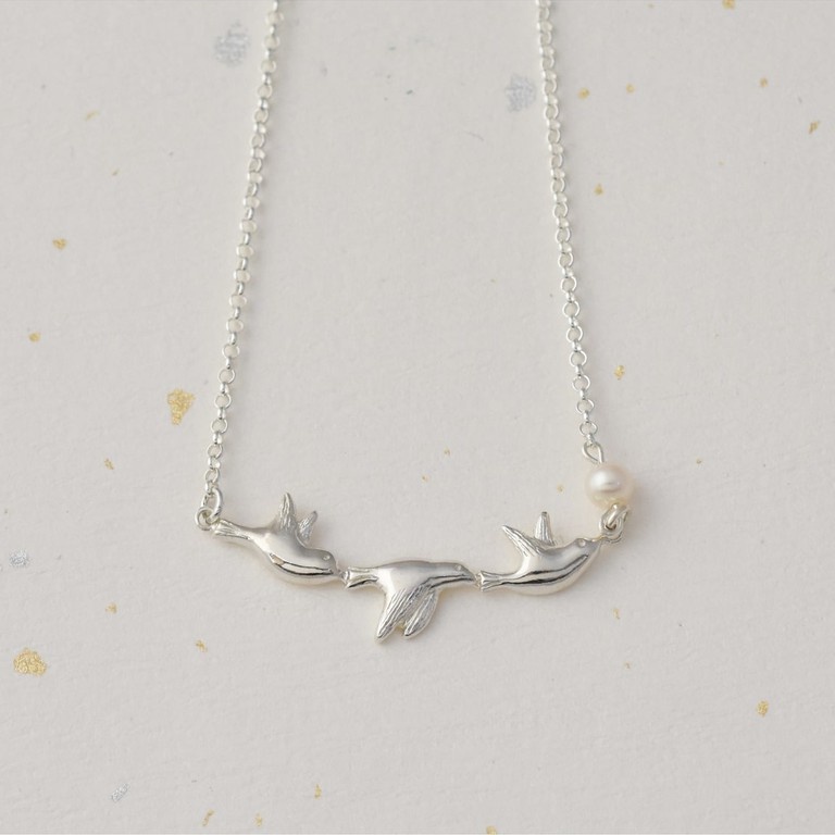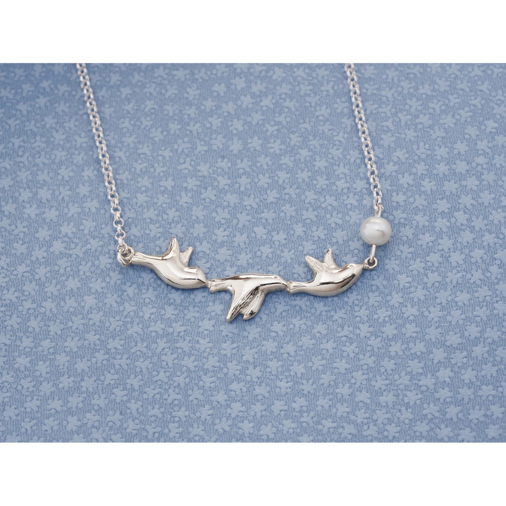 幸福青鳥 短款 | 純銀項鍊 珍珠項鍊 925純銀 可愛動物 手工銀飾