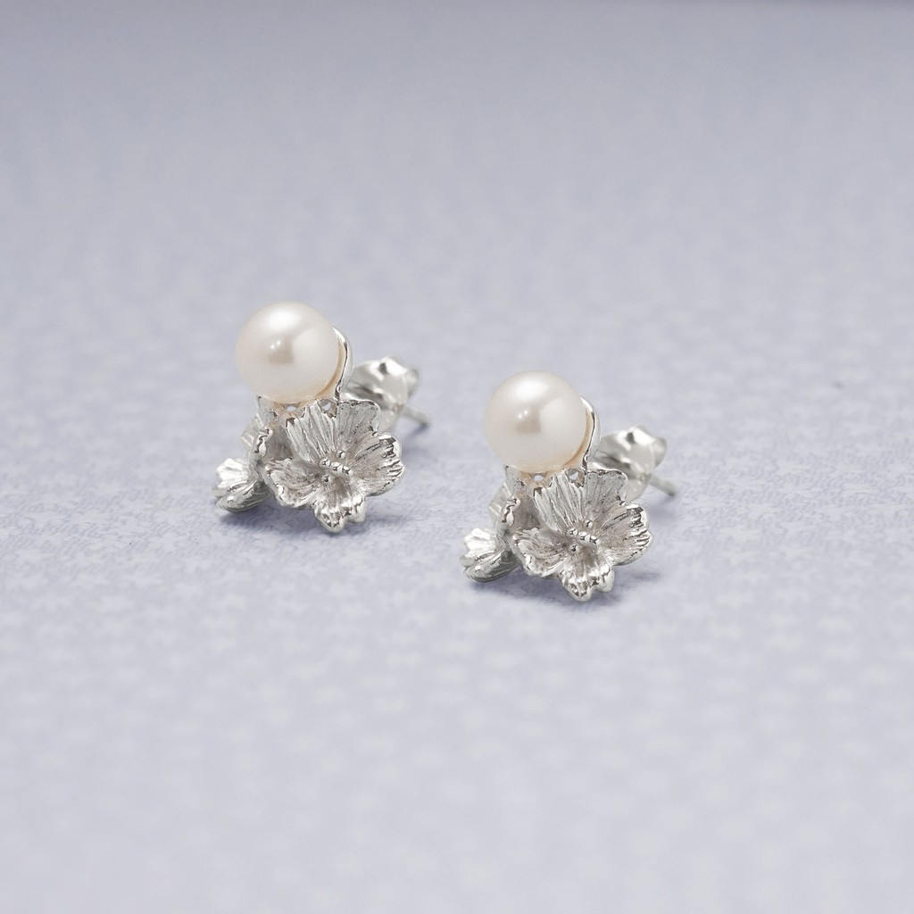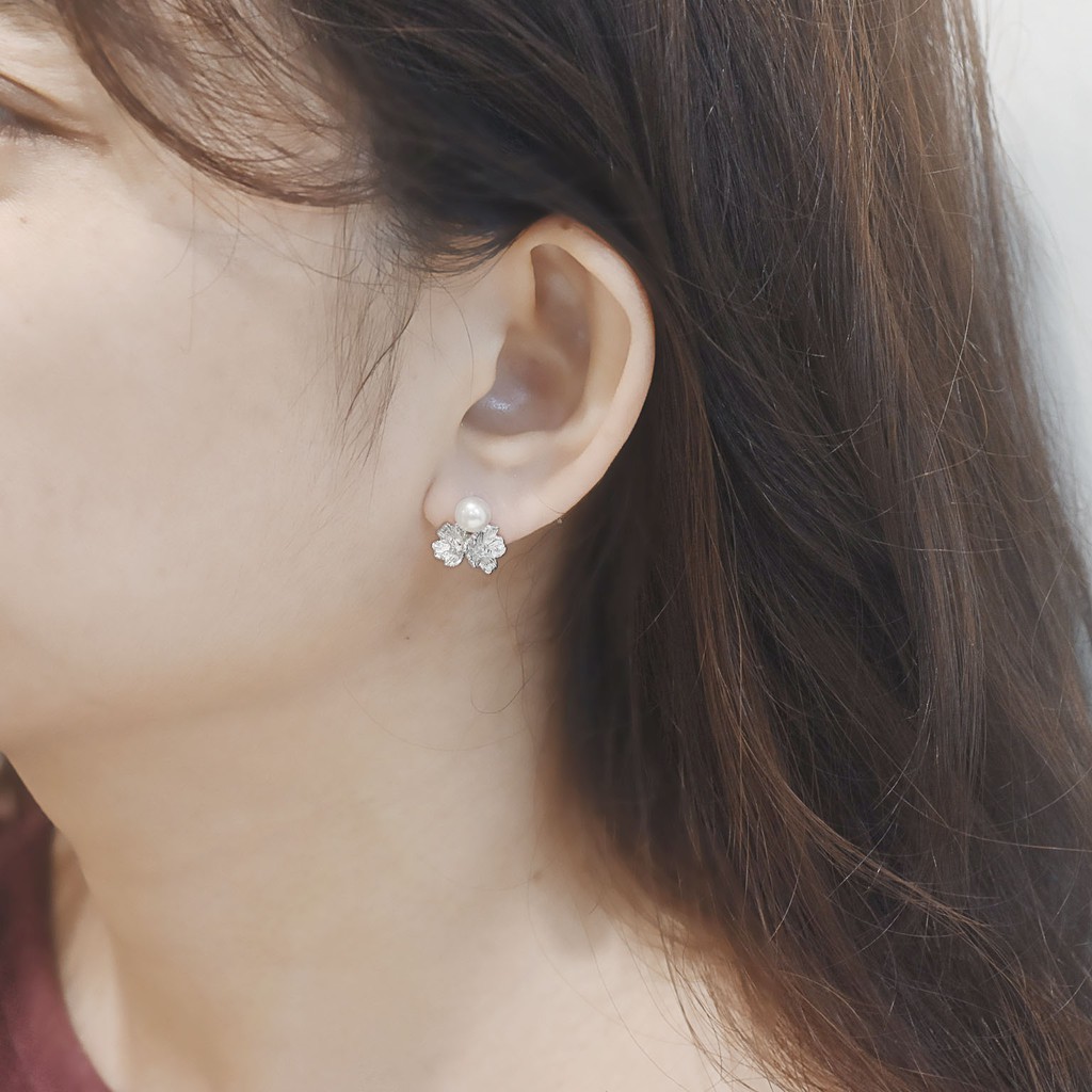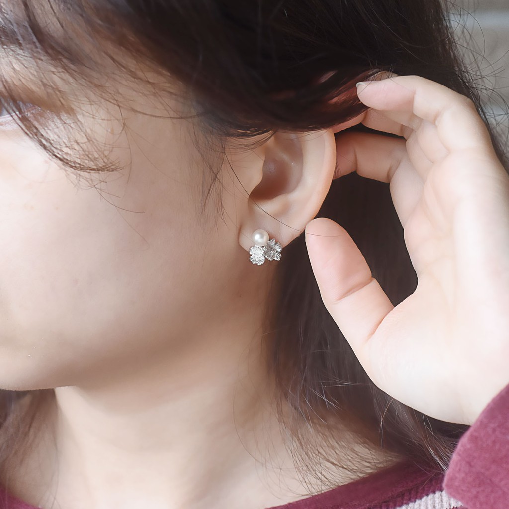 櫻花珍珠耳環 | 925純銀 女款 可改夾式 手工銀飾