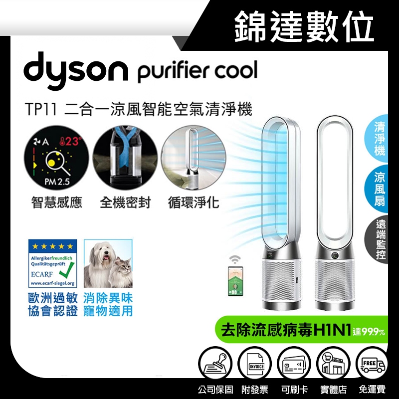 *錦達*【10%蝦幣回饋+ Dyson 戴森 Purifier Cool 二合一涼風智能空氣清淨機 TP11 白色】