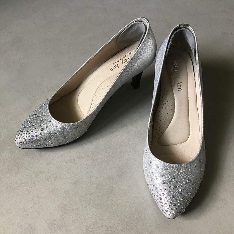 Keeley Ann 婚鞋 23.5號 璀璨光芒~水鑽唯美質感全真皮中跟鞋(銀色)