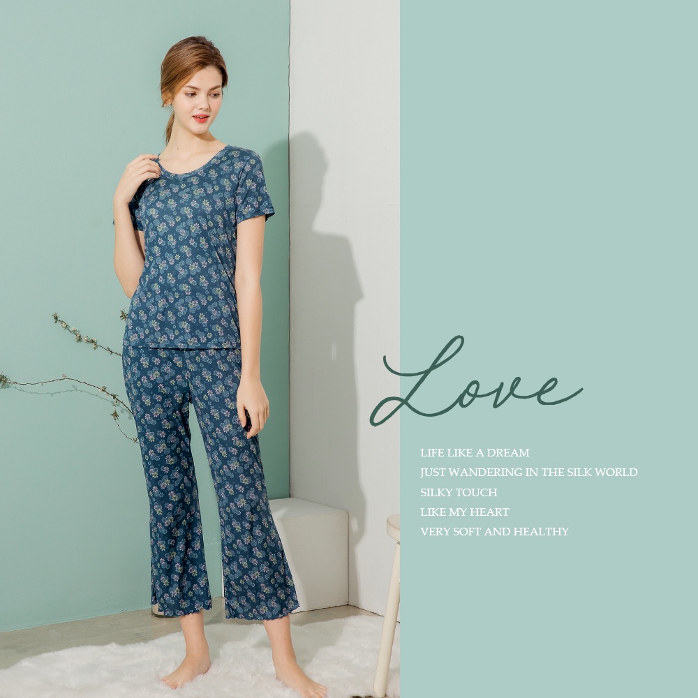 【岱妮蠶絲】純蠶絲42針110G居家九分睡褲(二色可選)