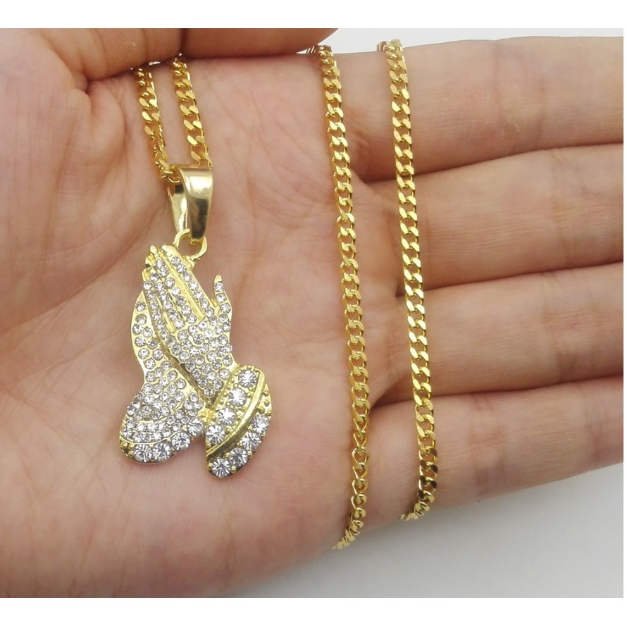 閃鑽雙手合十黃金禱告的手 黃金手 世界和平 祈禱之手項鍊