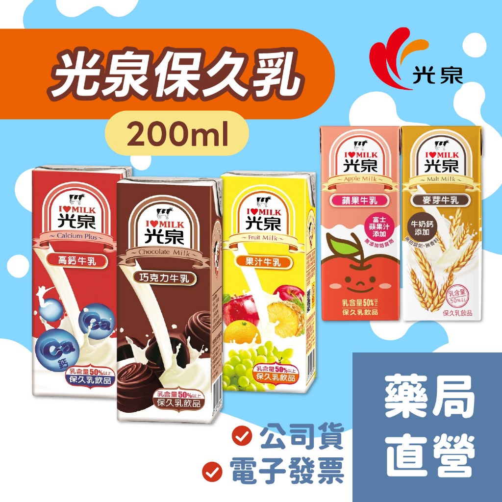 【禾坊藥局】光泉牛乳 保久乳 200ml 巧克力牛乳/果汁牛乳/高鈣牛乳/麥芽牛乳/蘋果牛乳 調味乳