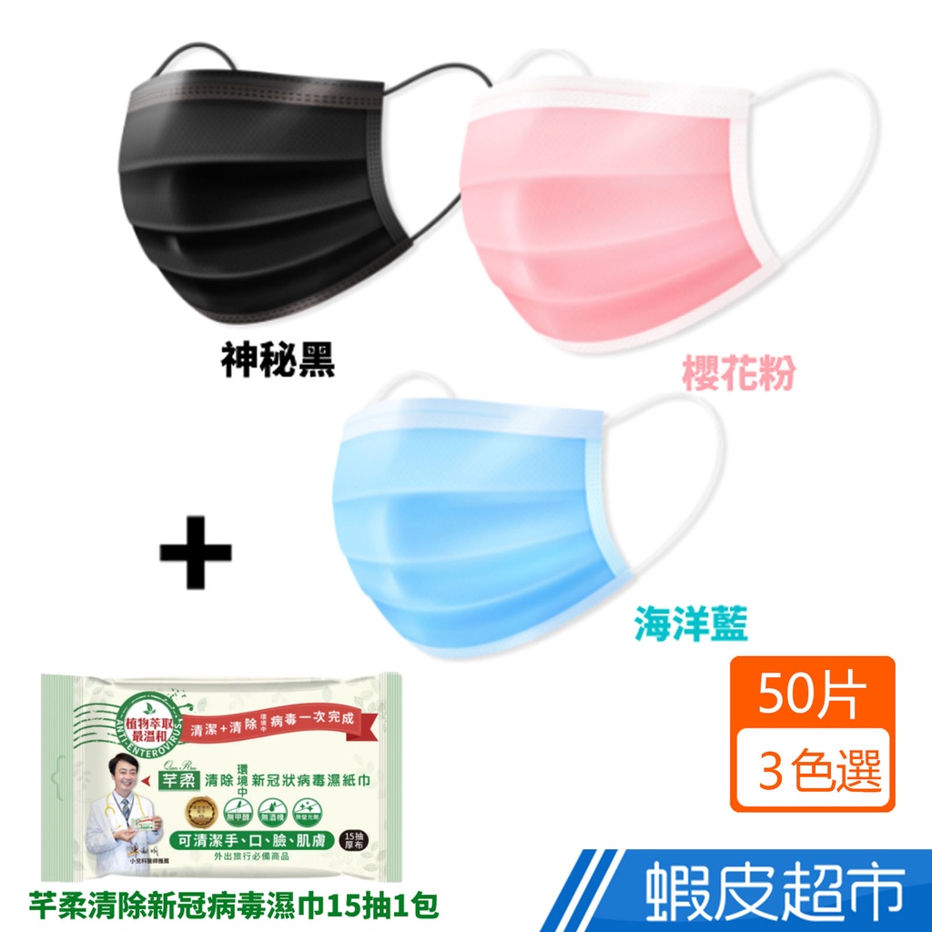 50入成人醫療口罩櫻花粉/神秘黑/海洋藍+芊柔新冠狀病毒濕紙巾15抽1包 蝦皮直送 現貨