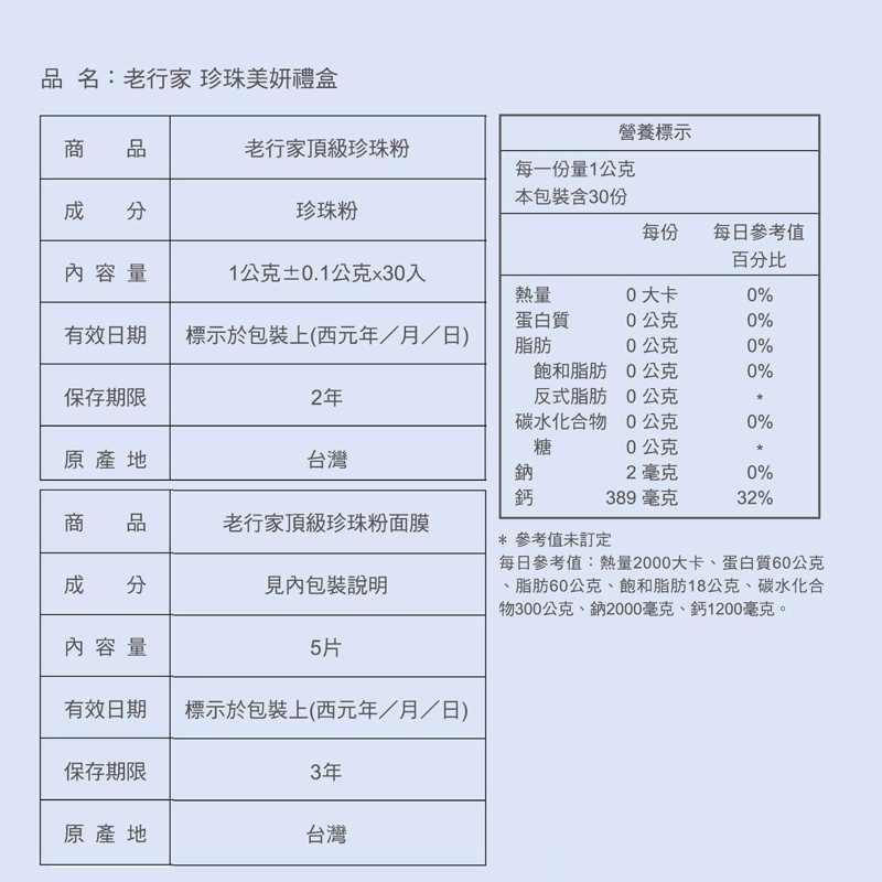 老行家 珍珠美妍禮盒 (頂級珍珠粉30入+珍珠粉面膜5片) 養顏美容 青春美麗 現貨 蝦皮直送