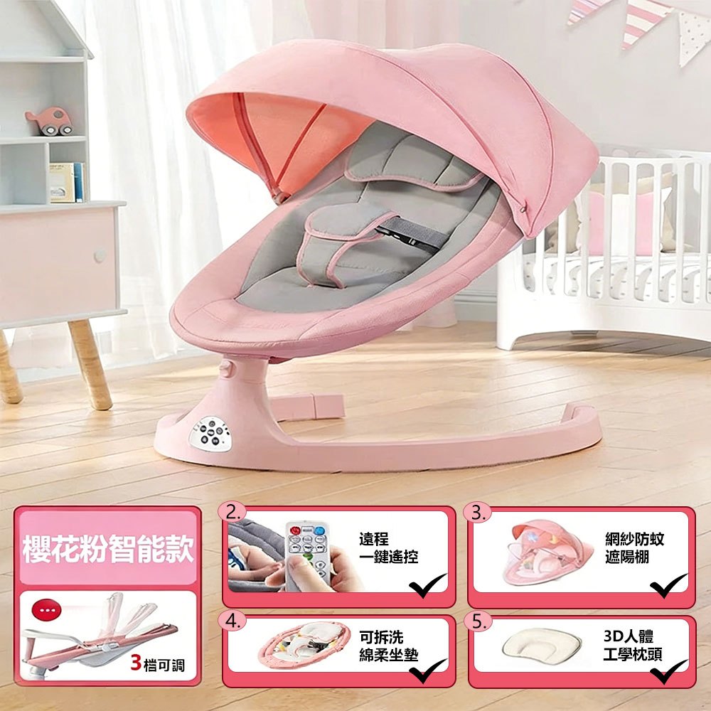 免運台灣12H出貨 日本新版 嬰兒電動搖搖椅 搖籃躺椅 新生兒搖搖床 寶寶電動搖籃 安撫椅 嬰兒床 搖搖椅 搖床哄娃神器