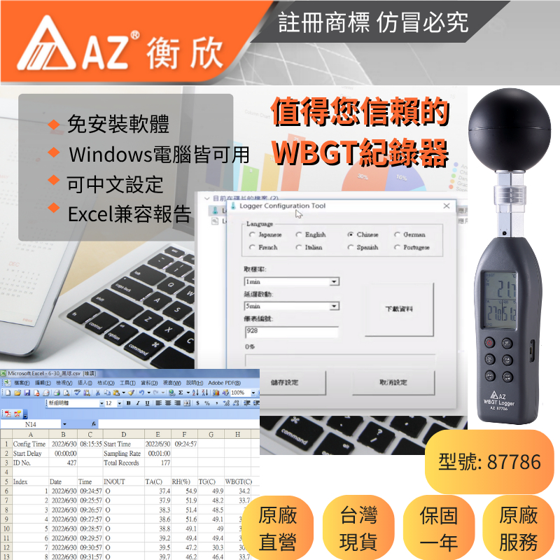 AZ衡欣實業87786高精度熱中暑指數計🔘綜合熱指數紀錄器🔘預防脫水中暑熱傷害熱衰竭熱痙攣