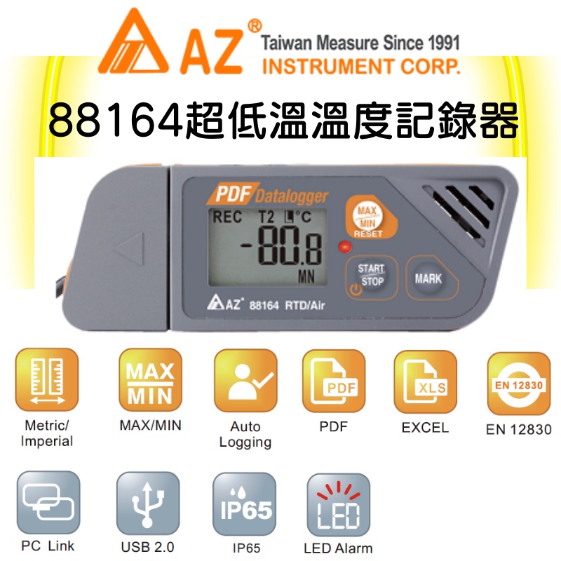 AZ衡欣實業 88164超低溫溫度記錄器(USB介面)🔘溫度紀錄