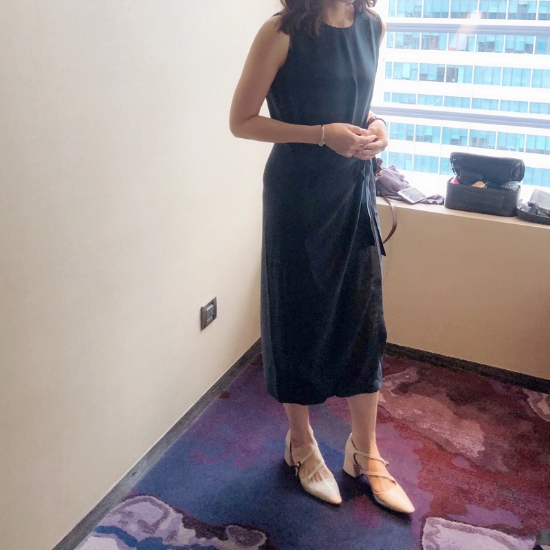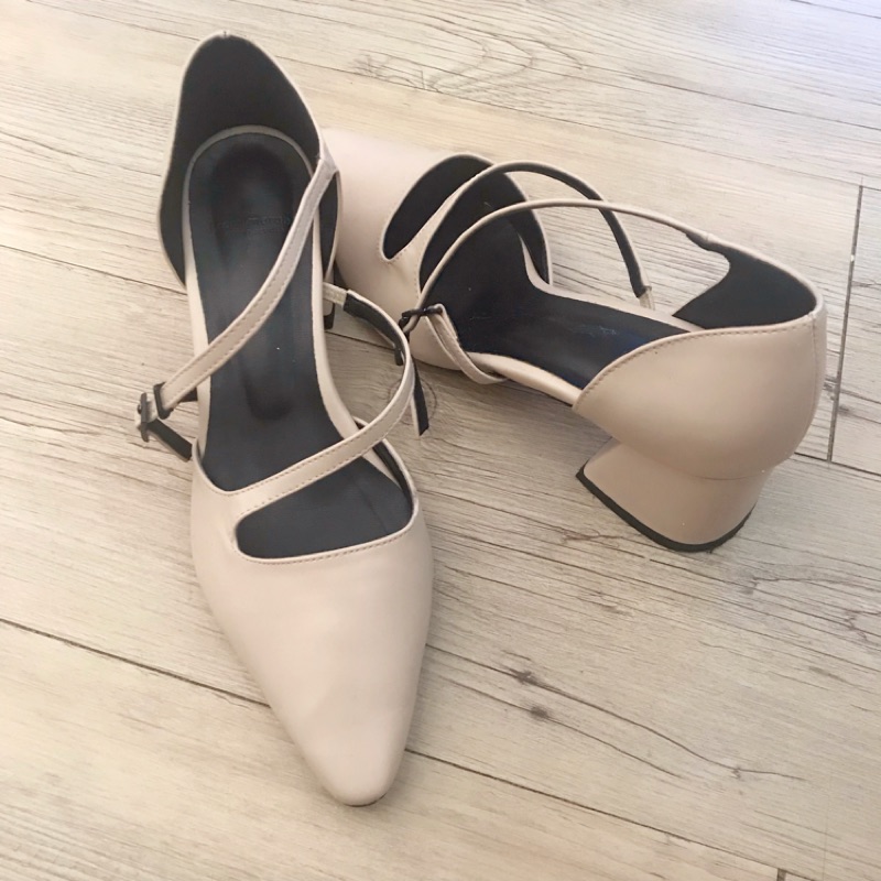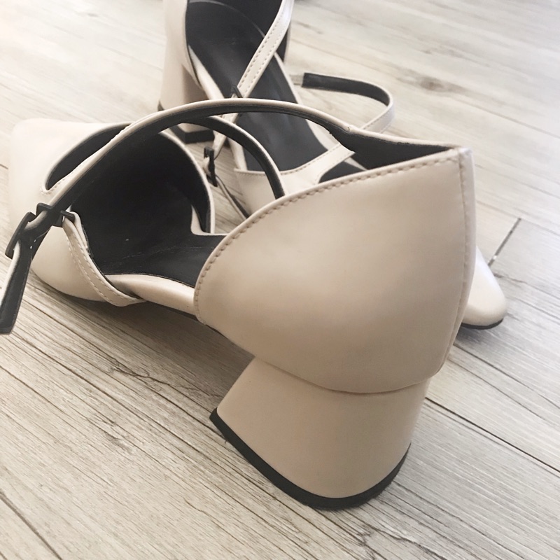 杏色繫帶氣質粗跟涼鞋
