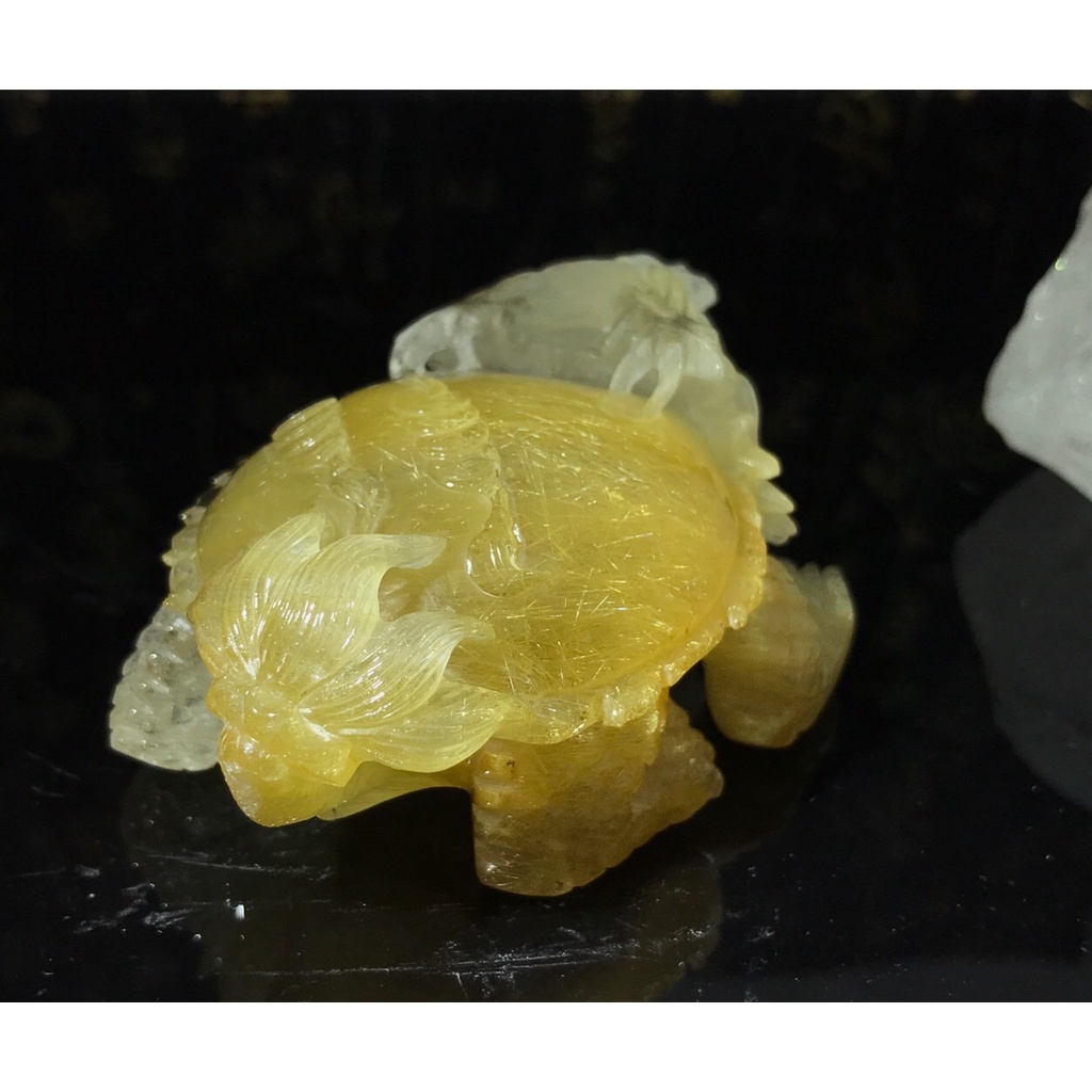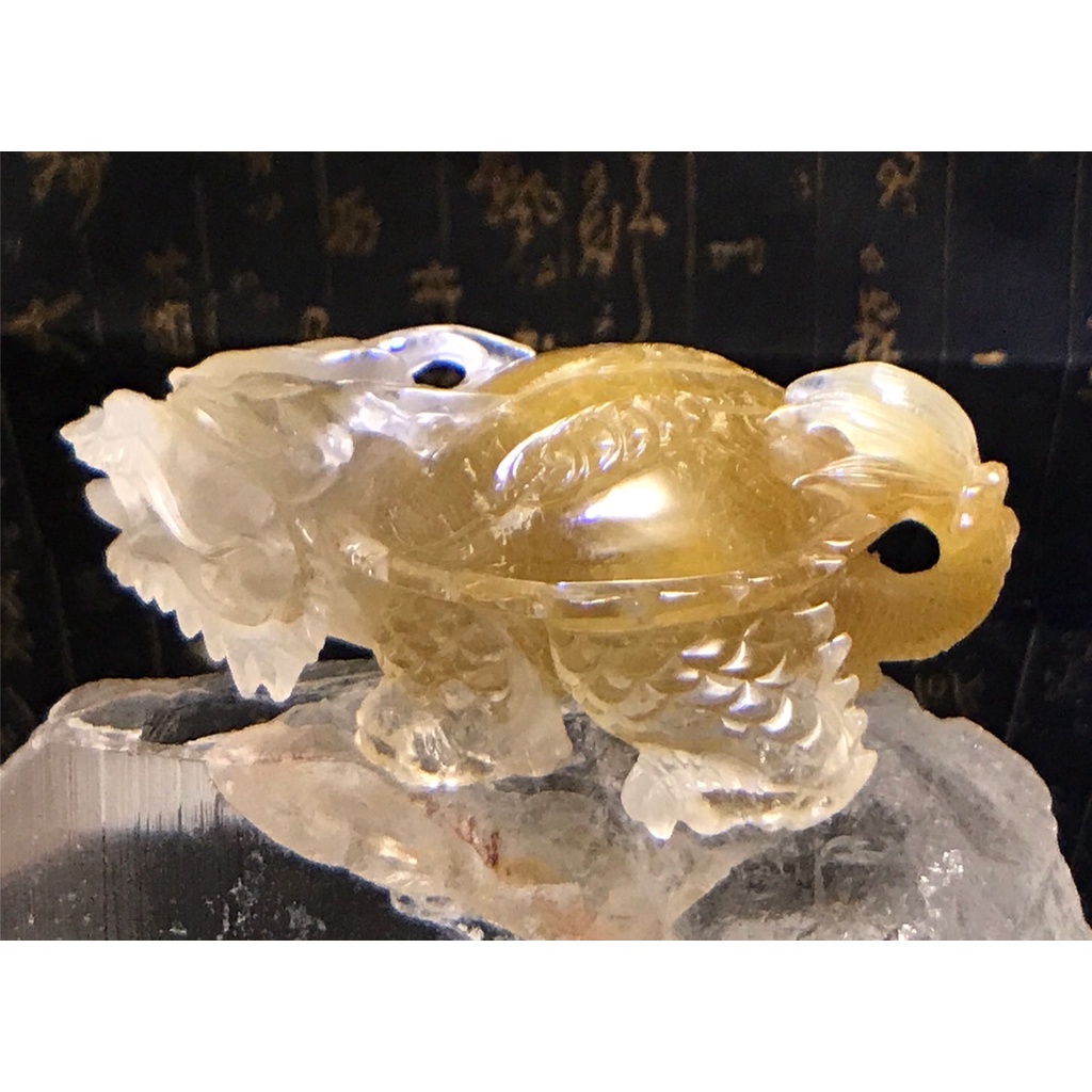 精雕金黃鈦髮晶錢幣龍龜