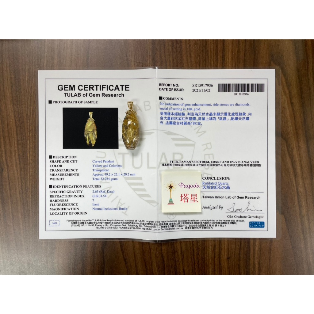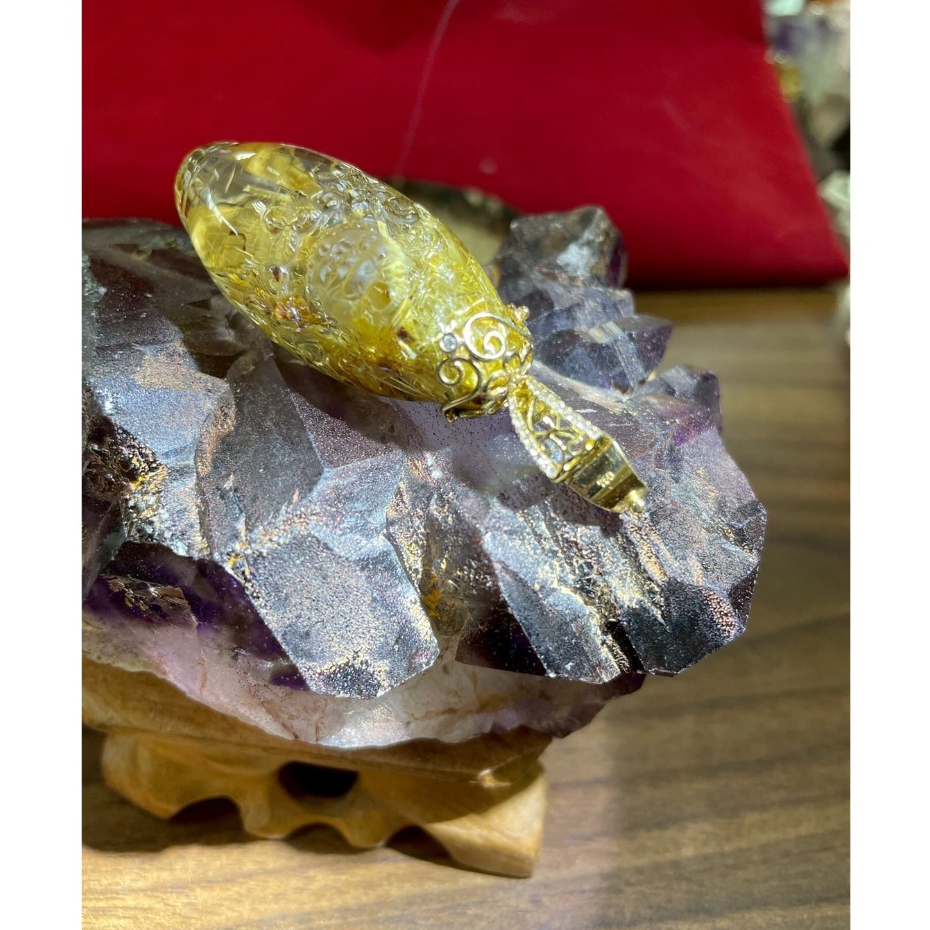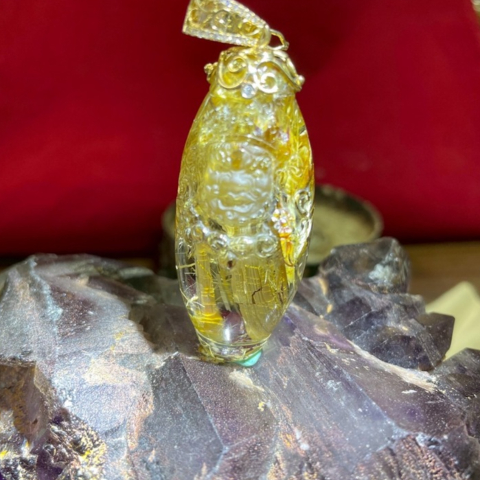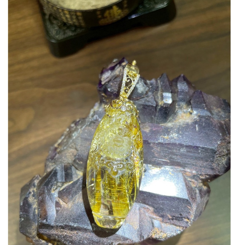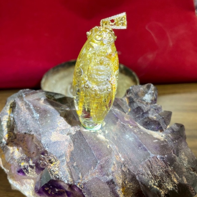 清透全美精雕燕尾鈦黃財神墜飾附鑑定書