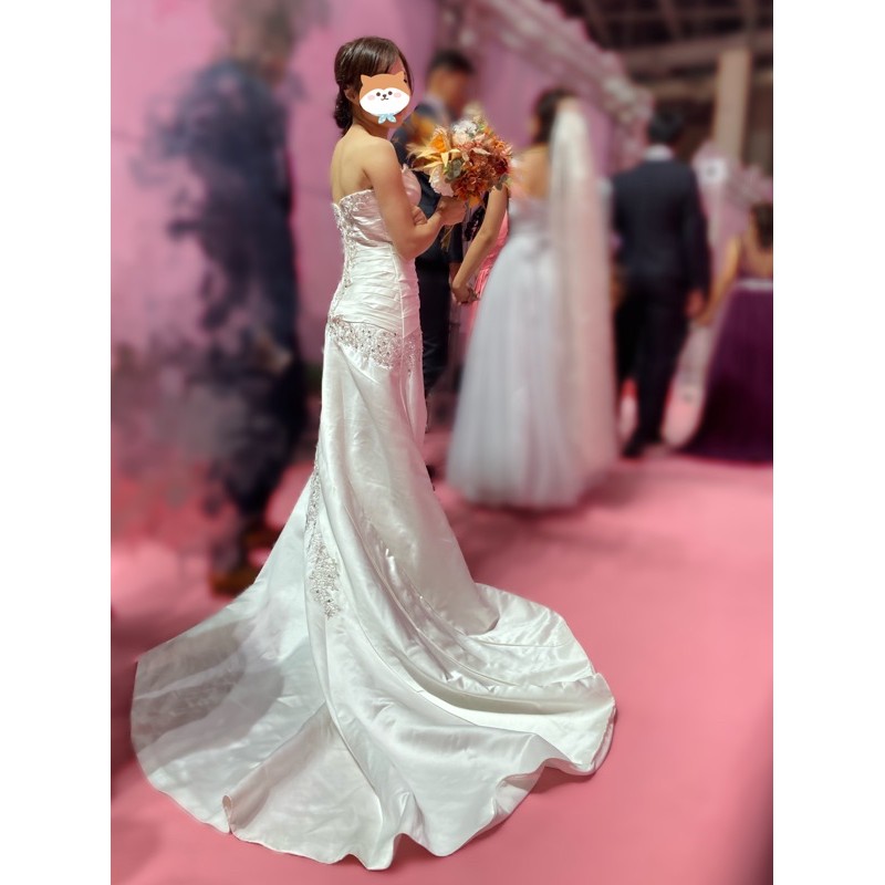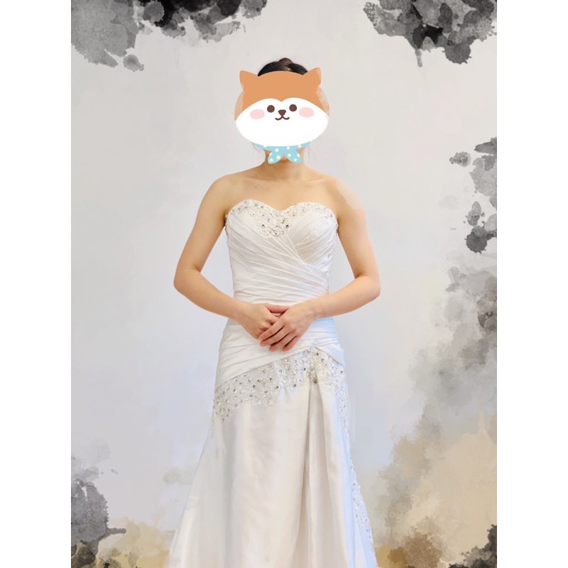 桃心領緞面拖尾白紗/禮服/自助婚紗/輕婚紗/旅拍