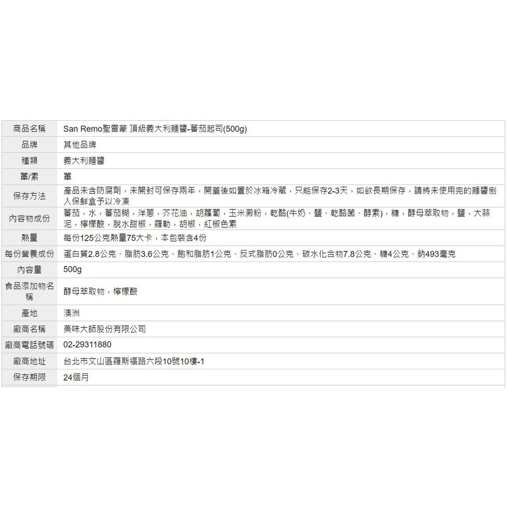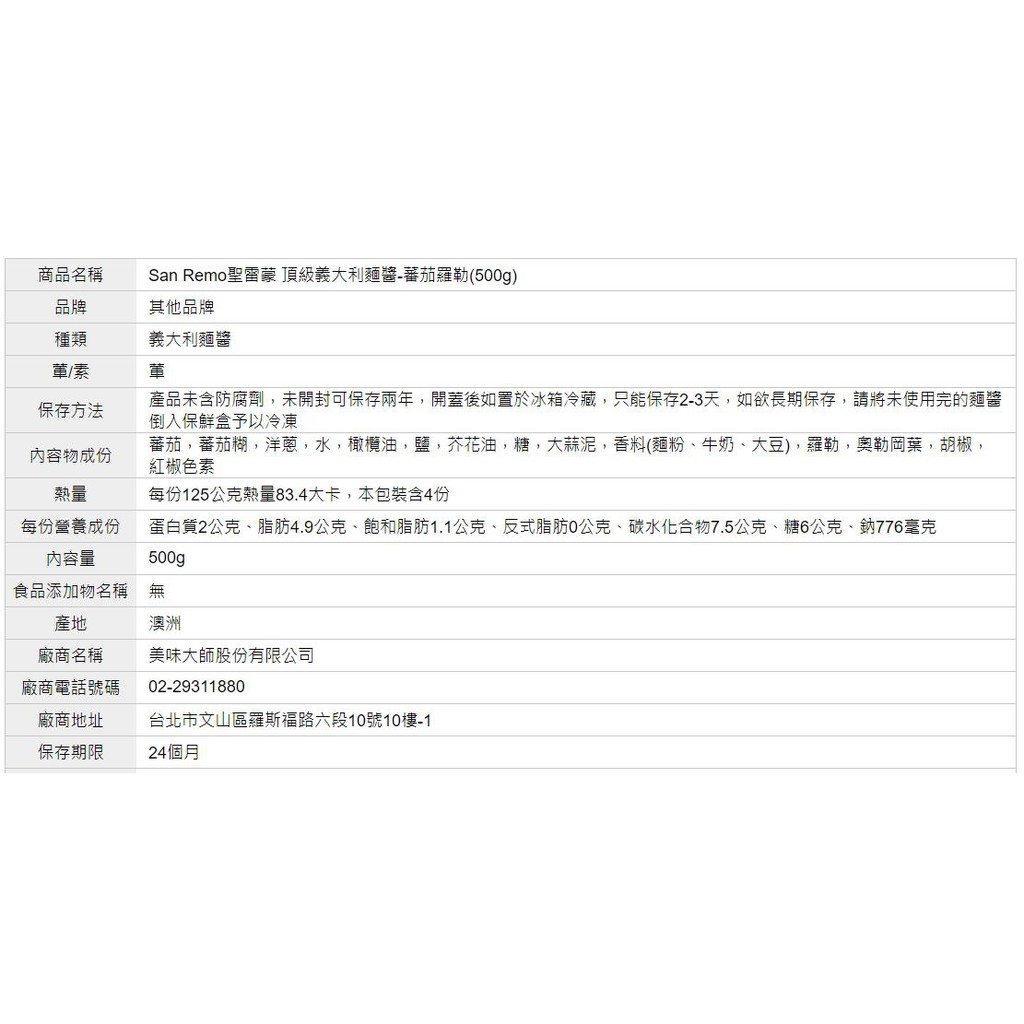 【美味大師】SanRemo 澳洲義大利麵醬 蕃茄大蒜/蕃茄羅勒/蕃茄起司/辣味蕃茄/拿坡里/起司蘑菇口味