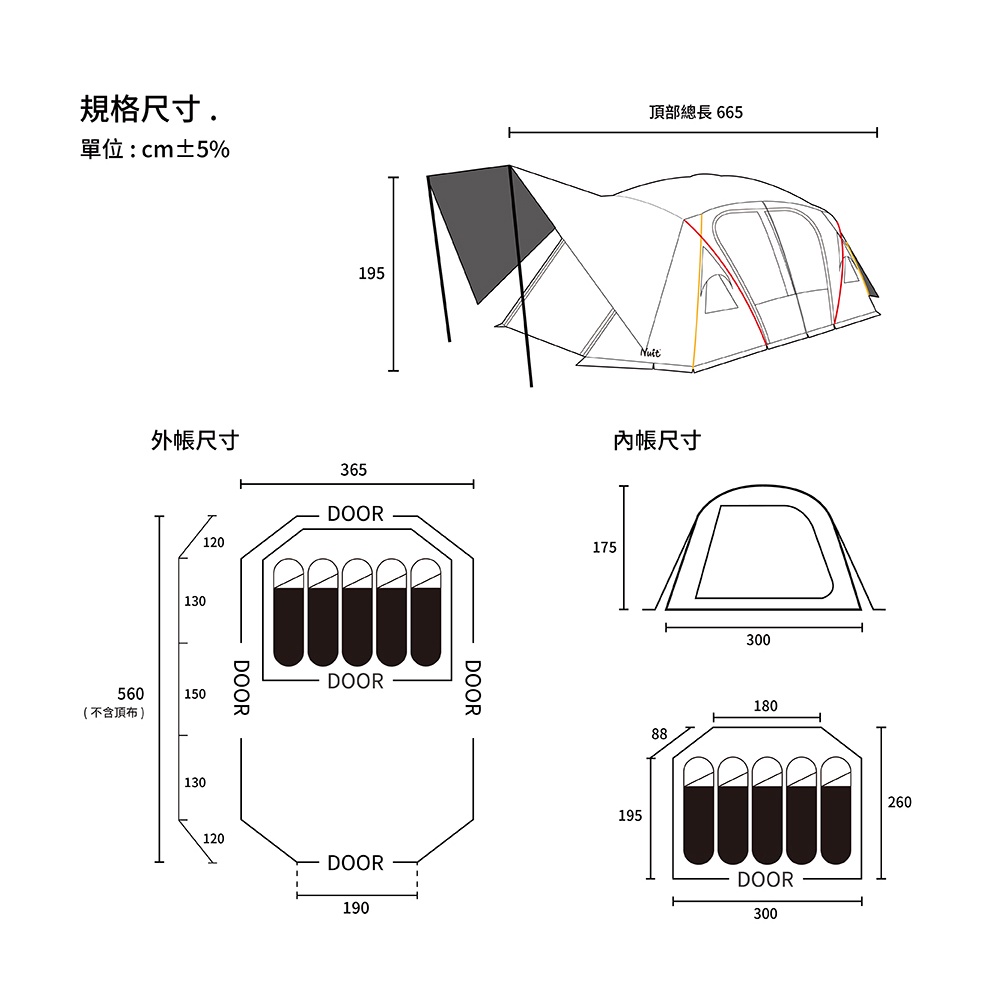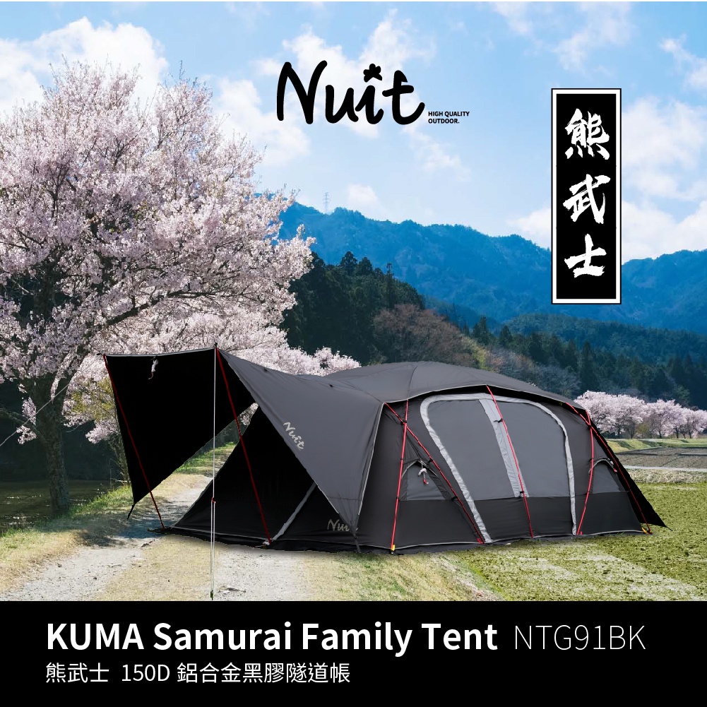 【努特NUIT】 NTG91 熊武士 黑膠一房一廳家庭帳六人帳 鋁合金黑膠隧道帳篷帳蓬帳棚 努特帳