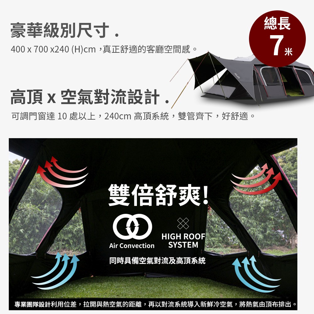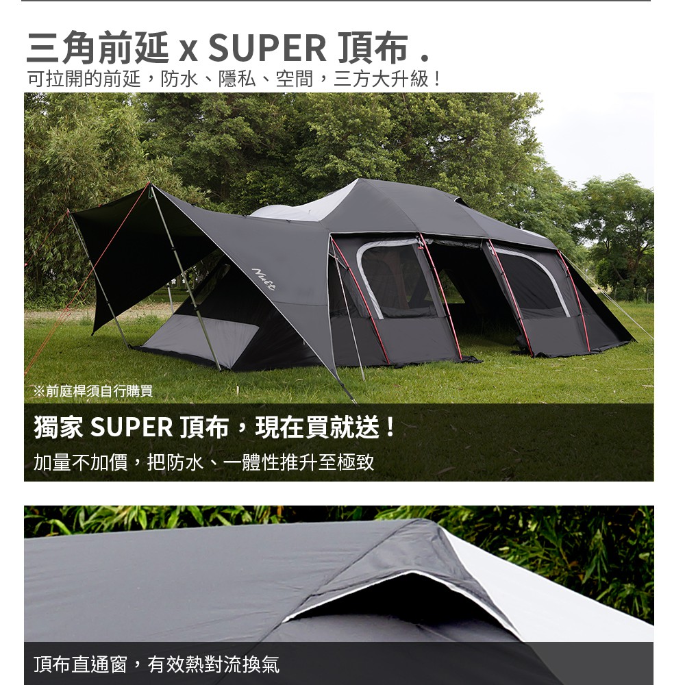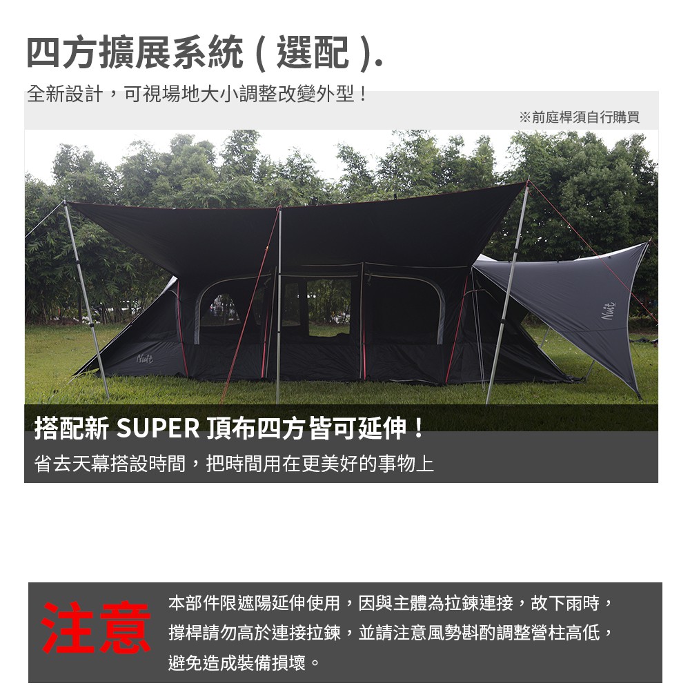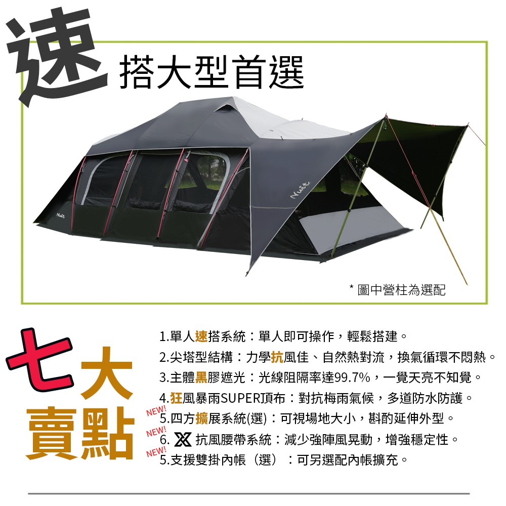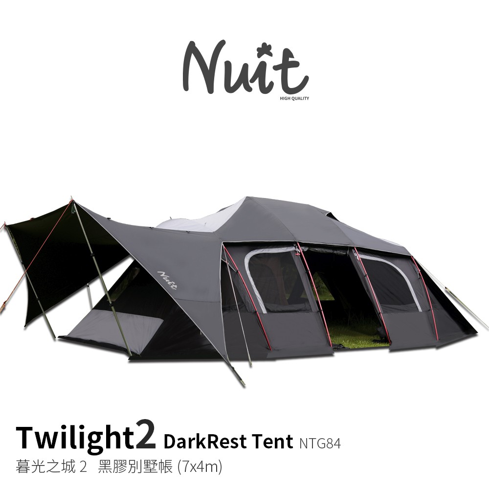 【努特NUIT】 NTG84 暮光之城2 黑膠7x4m塔型家庭帳篷 快搭帳 黑膠帳別墅帳蓬隧道努特帳