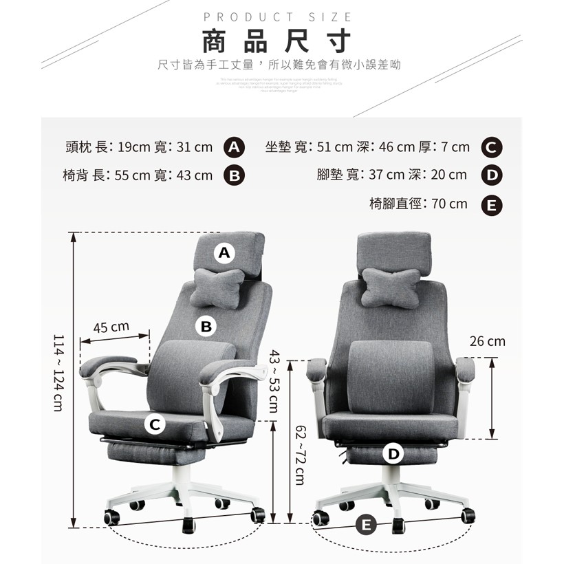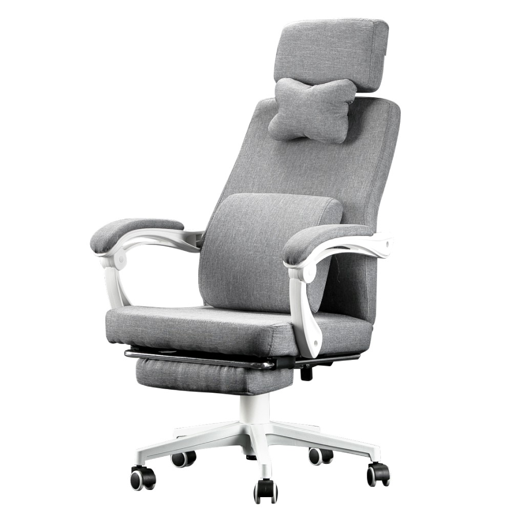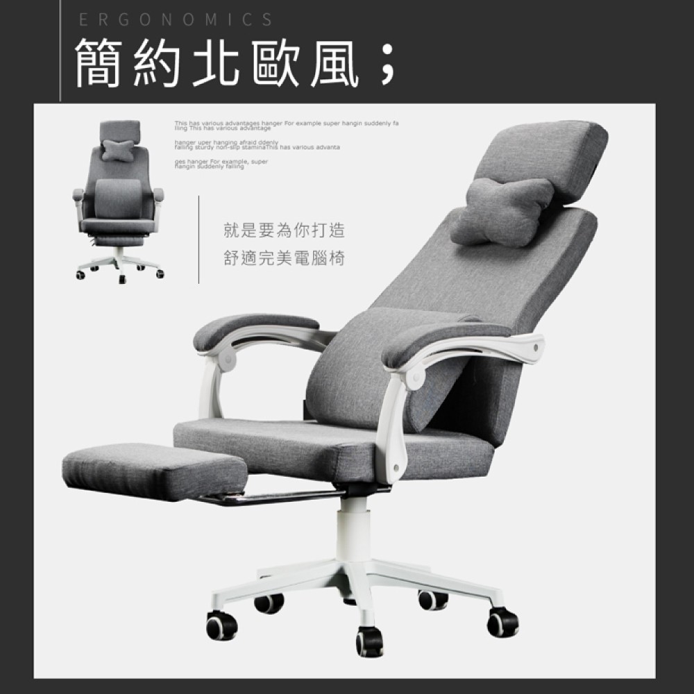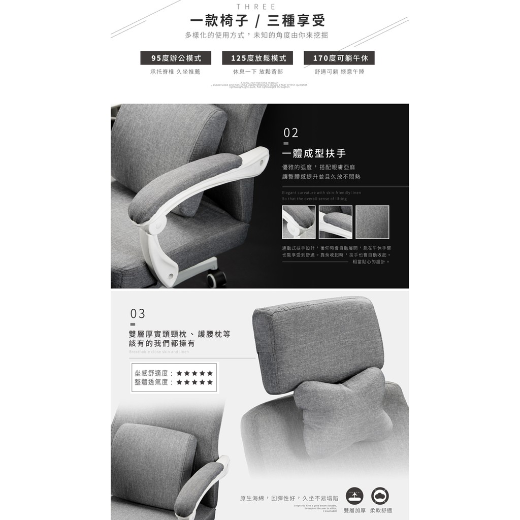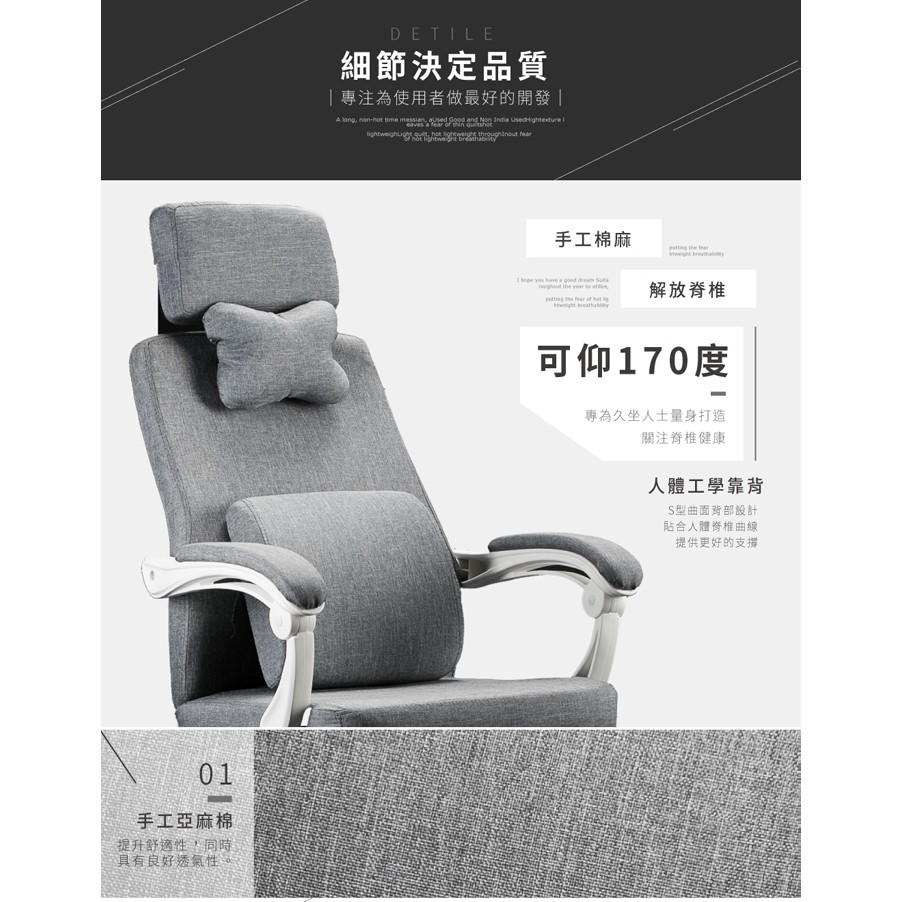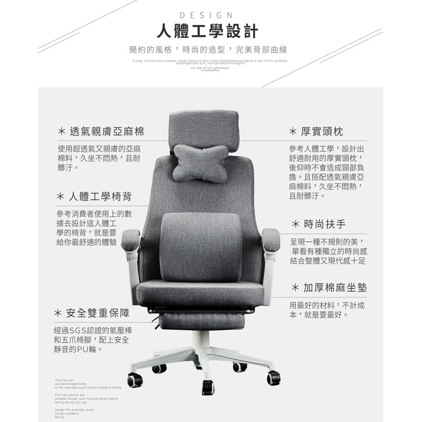 【IDEA】透氣麻棉高背人體工學椅辦公椅 電腦椅附抬腳架