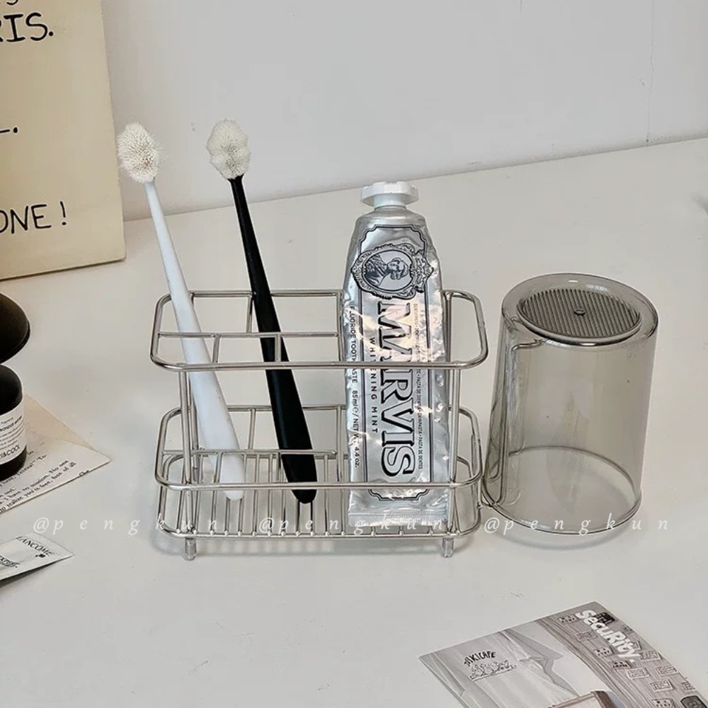 台灣發貨-不鏽鋼牙刷置物架家用浴室洗漱臺牙杯牙膏漱口杯架