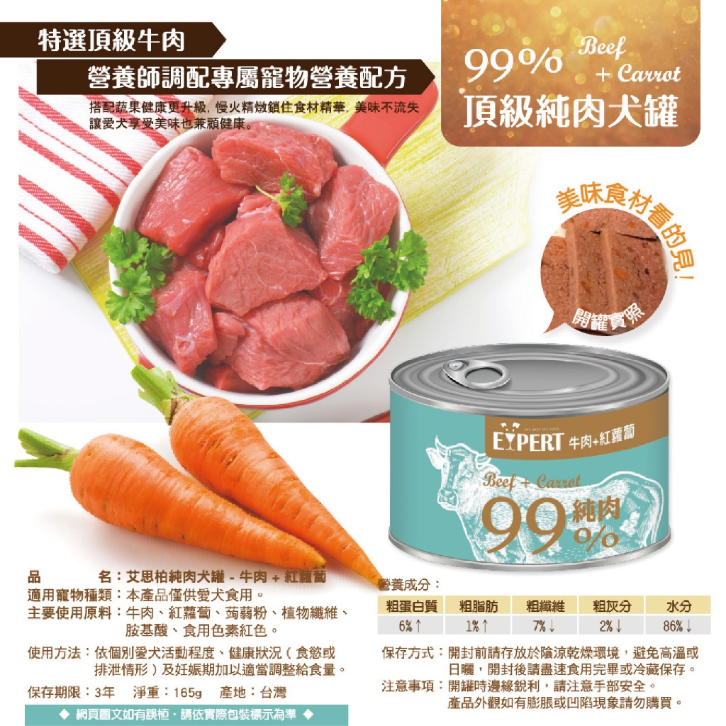 🍀現貨🍀EXPERT 艾思柏 99%頂級純肉犬罐 165g 狗罐頭 副食罐 狗罐 犬罐 全口味