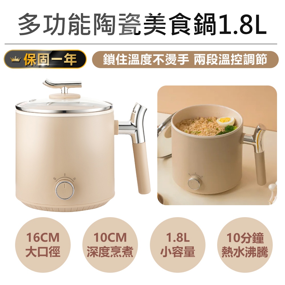 【KINYO 多功能陶瓷美食鍋1.8L FP-0772】電煮鍋 快煮鍋 電火鍋 陶瓷塗層 美食鍋 泡麵鍋 兩段火力