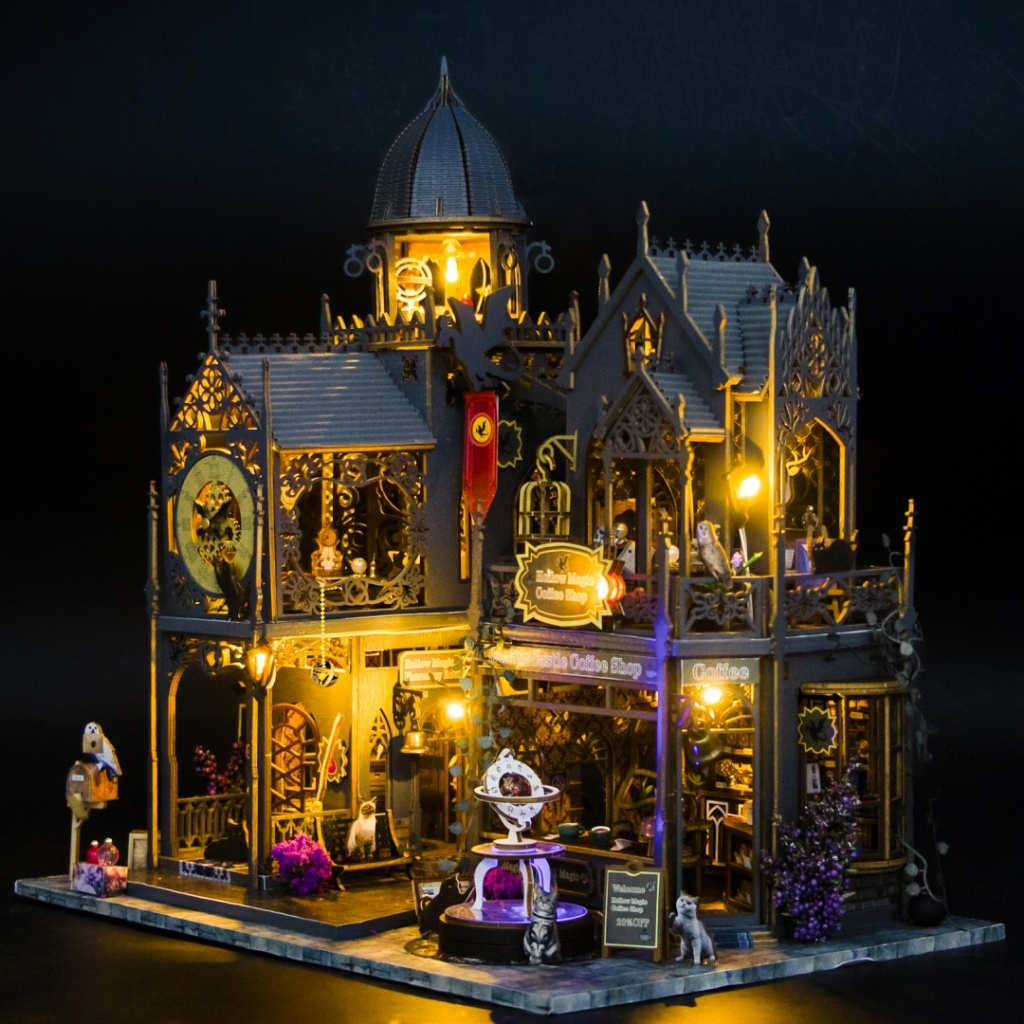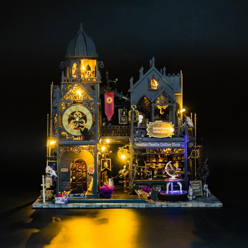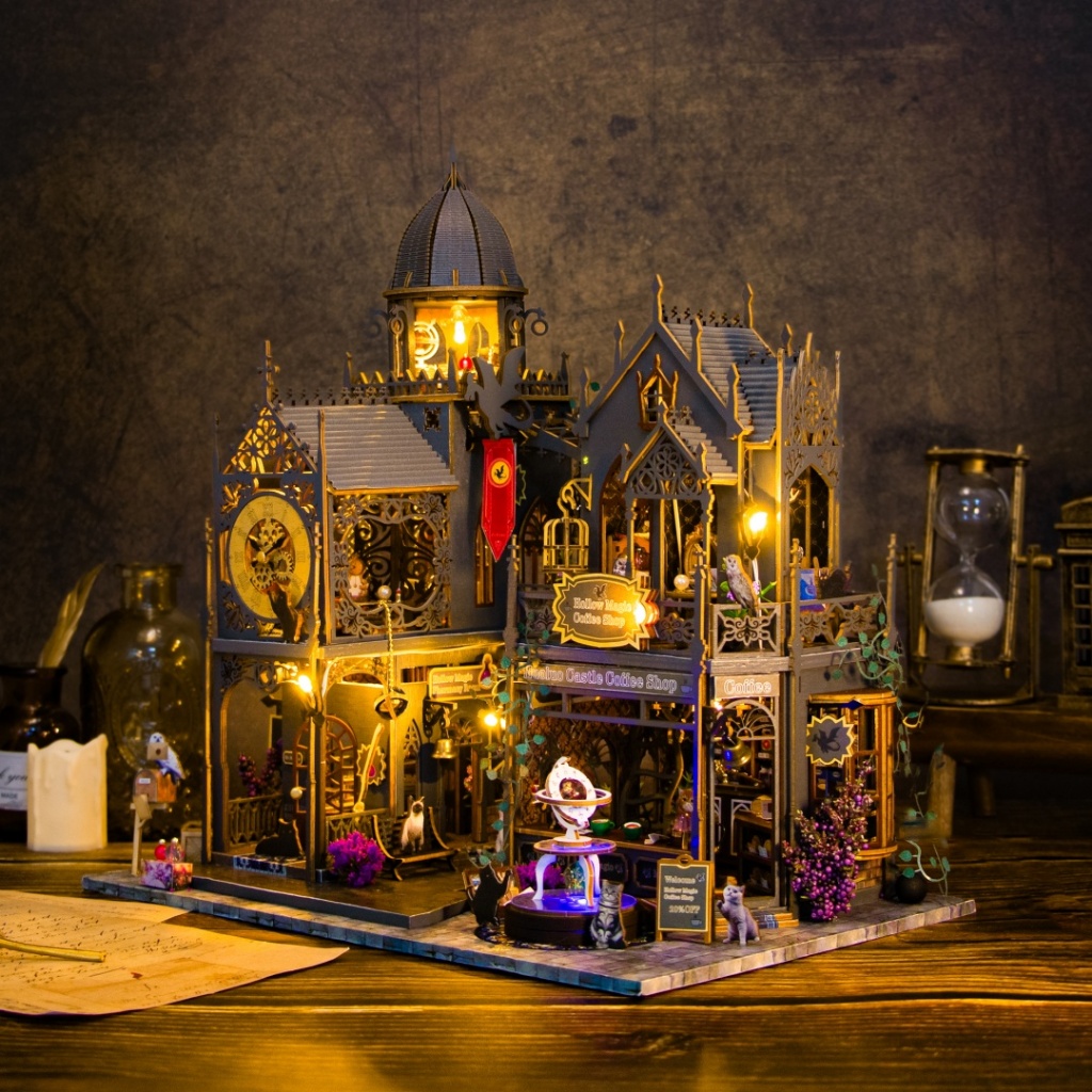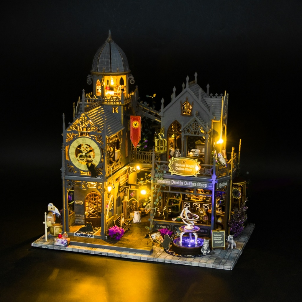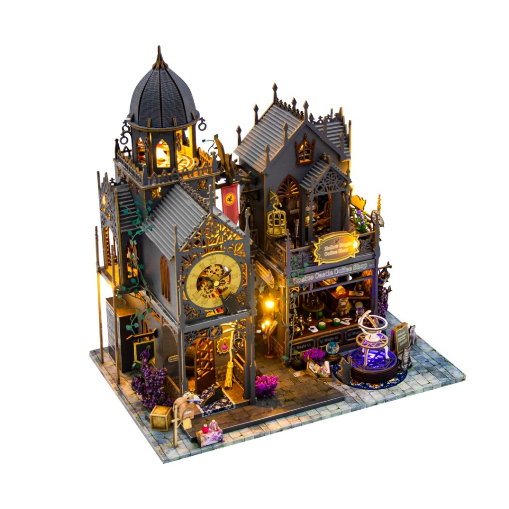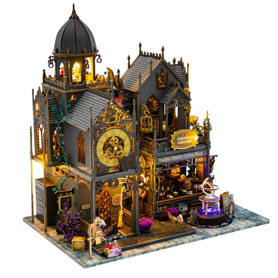 【霍洛魔堡】DIY小屋袖珍屋弘達 霍洛魔城木質卡扣拼裝建築城堡模型屋交換禮物 3D手作 模型屋魔法小屋 娃娃屋