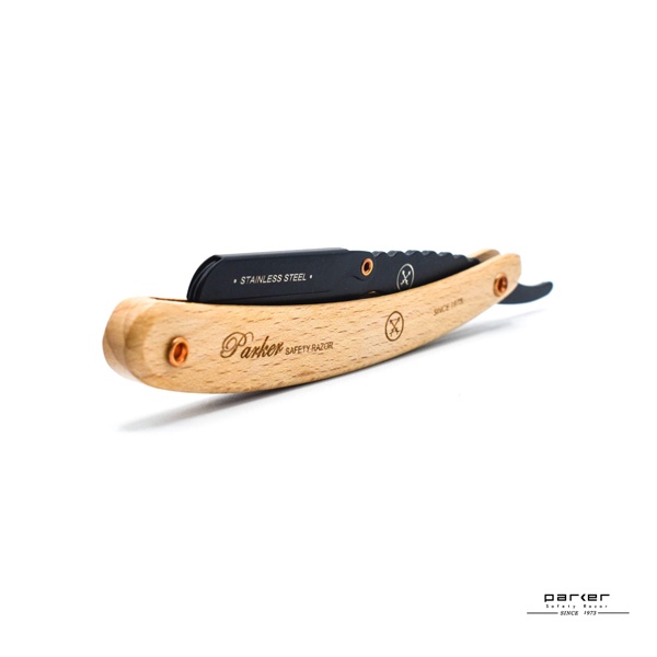GOODFORIT /美國Parker Professional Clip Barber Razor松木柄黑不鏽鋼剃刀