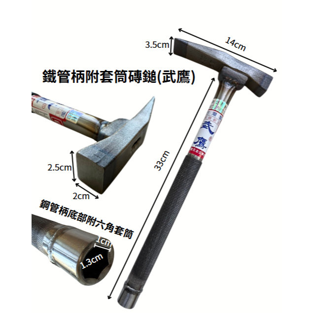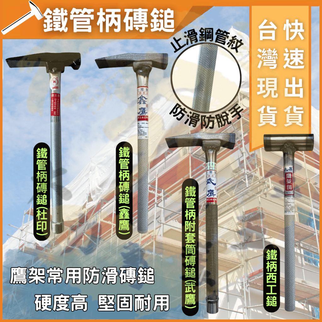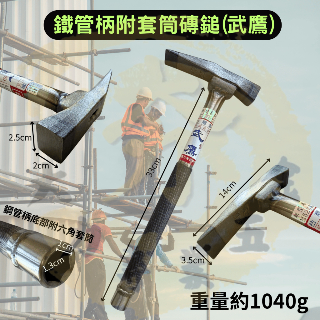 大力夯專業五金 台灣現貨 杜印 磚槌 鐵柄 磚鎚 槌子 鐵鎚 鎚 磚仔鎚 磚鎚 鷹架作業用 押花手柄 武鷹 西工鎚 鑫鷹