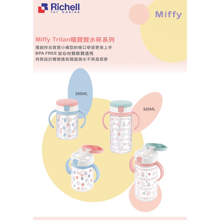 Richell 利其爾|Miffy米飛吸管水杯大全配四件組合(320ml+專屬背帶+替換吸管+墊圈)