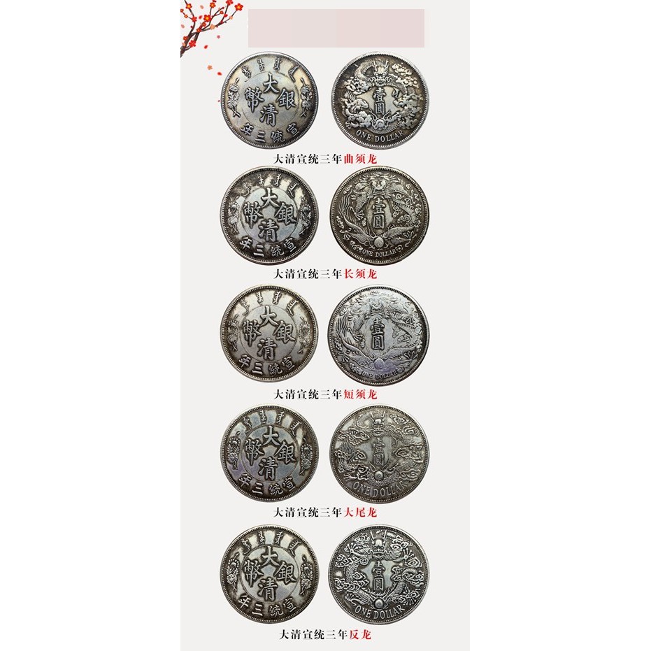 大清 宣統三年銀元銀幣 短須龍 曲須龍 長須龍 反龍 大尾龍 洋元 元寶 非流通貨幣