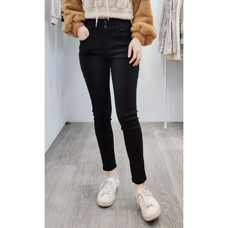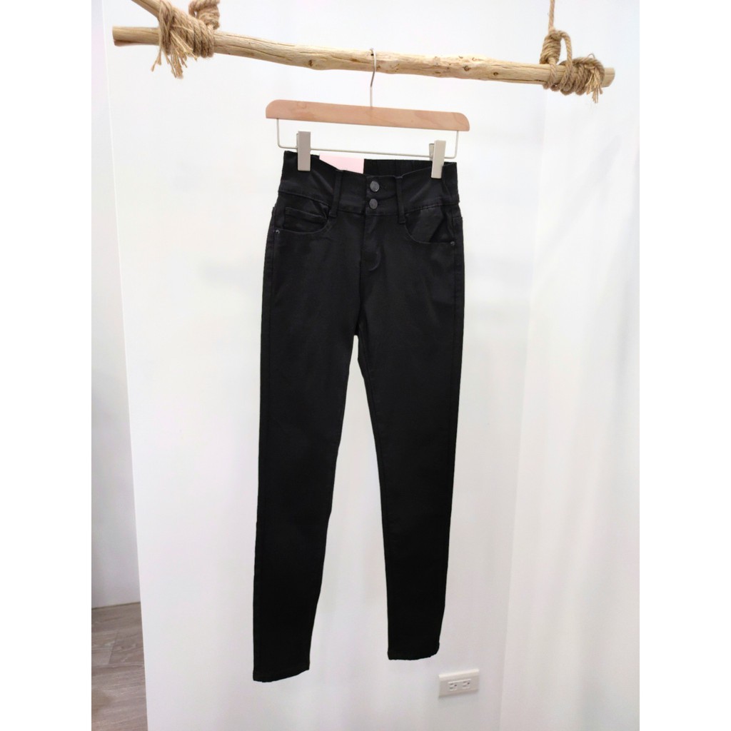(D80)黑色雙釦窄管長褲S-2L【現貨S.2L】