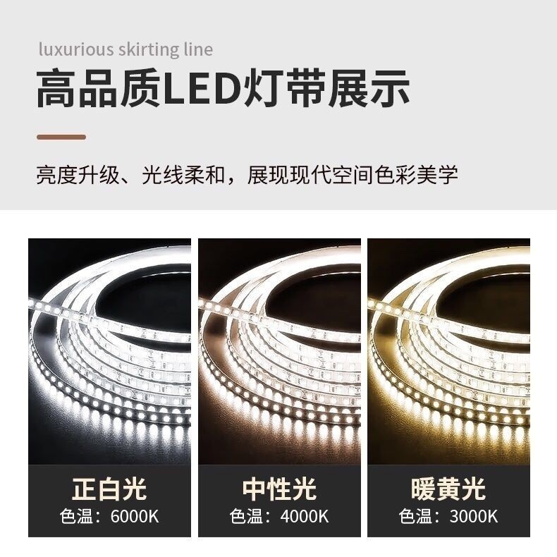 【台灣熱銷】👉发光铝合金踢脚线 ✨带地角线灯带💕不锈钢金属贴脚✨Led灯槽明装地脚线 💕踢脚线