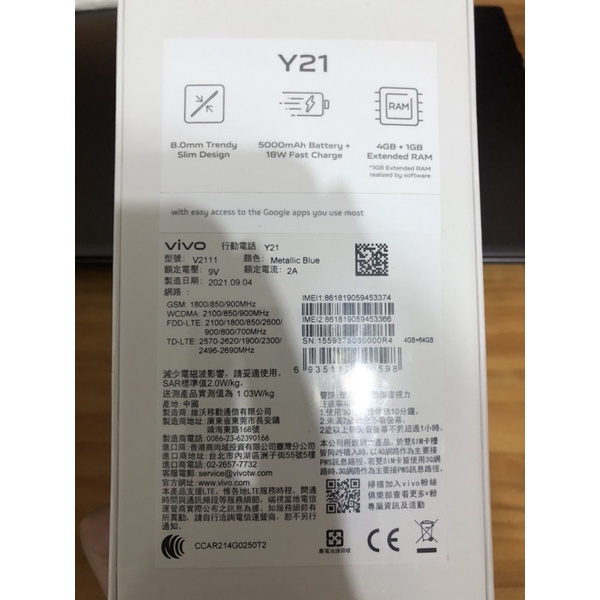 免運)Vivo Y21 (4G+64G) 八核心6.5吋智慧型手機