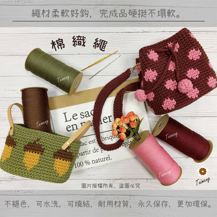 台孟牌 棉織繩 3mm 305色 台灣製造 無包芯 編織小花 棉線 圓織帶 鈎針 縮口繩 針織 飲料杯套 Macrame