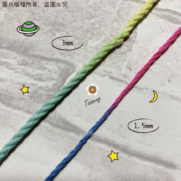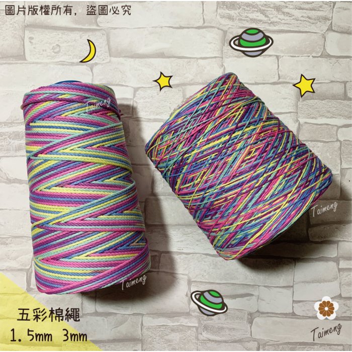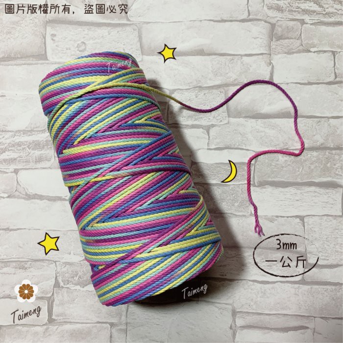 台孟牌 五彩漸層 棉繩 1.5mm 3mm 大包裝 台灣製造 Macrame 三股棉 麻花繩 彩色棉線 編織 苔球 毛線